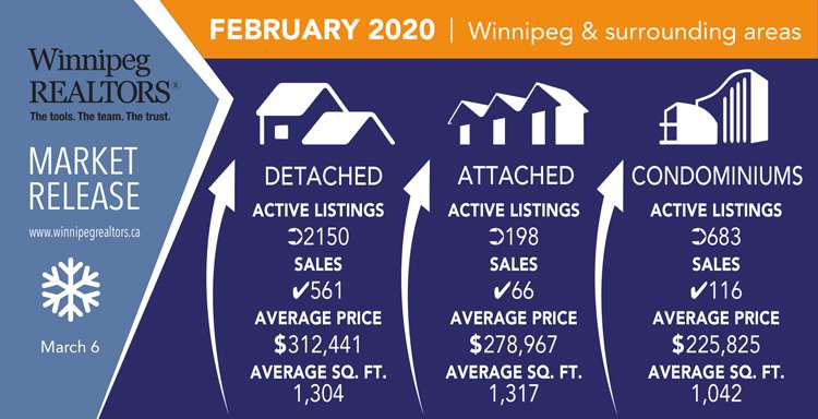 WINNIPEG – MLS® sales activity in February replicated January’s 15% increase resulting in 837 sales. The extra day helped as the only other year to see sales rise above 800 in February was in the 2016 leap year. Dollar volume of $236 million was not as strong with a 10% increase over February 2019.