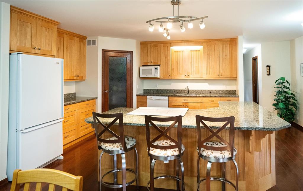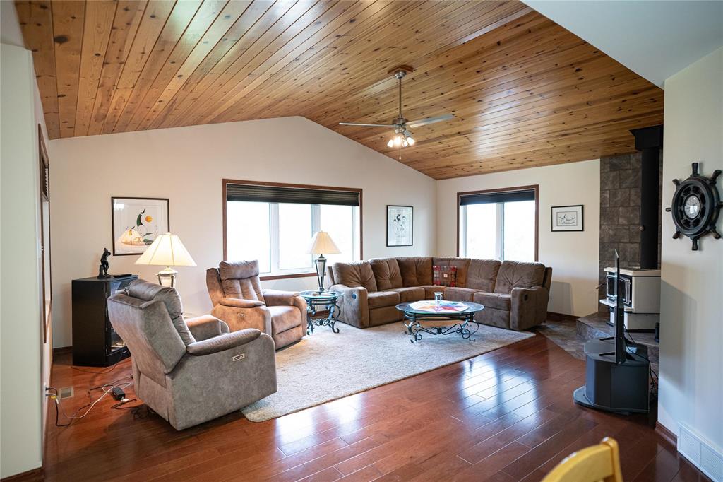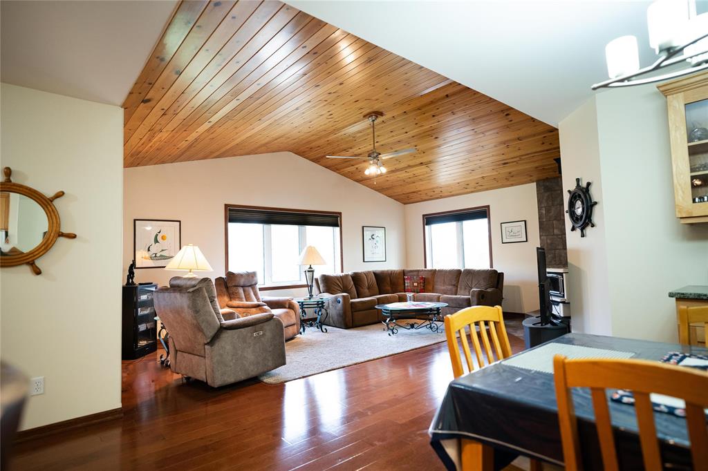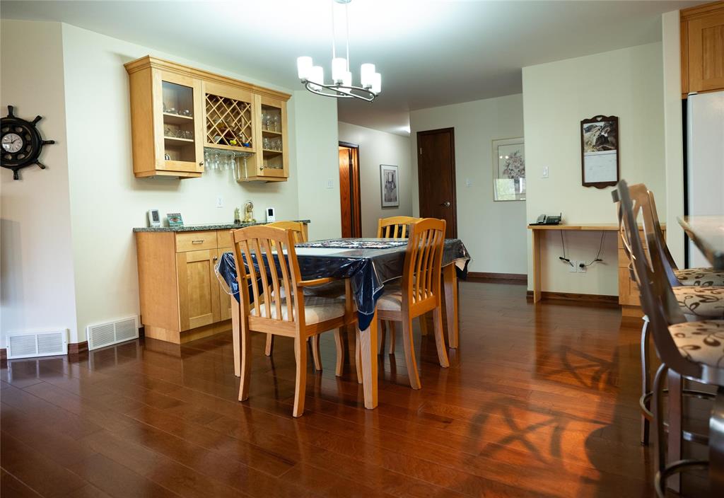 Custom built 1875 sq ft. raised bungalow on a creek side lot. Quality and craftsmanship by Moonlight Construction. Entry from double garage to open concept kitchen/dining & living areas. Living room features a vaulted ceiling and a charming wood stove.