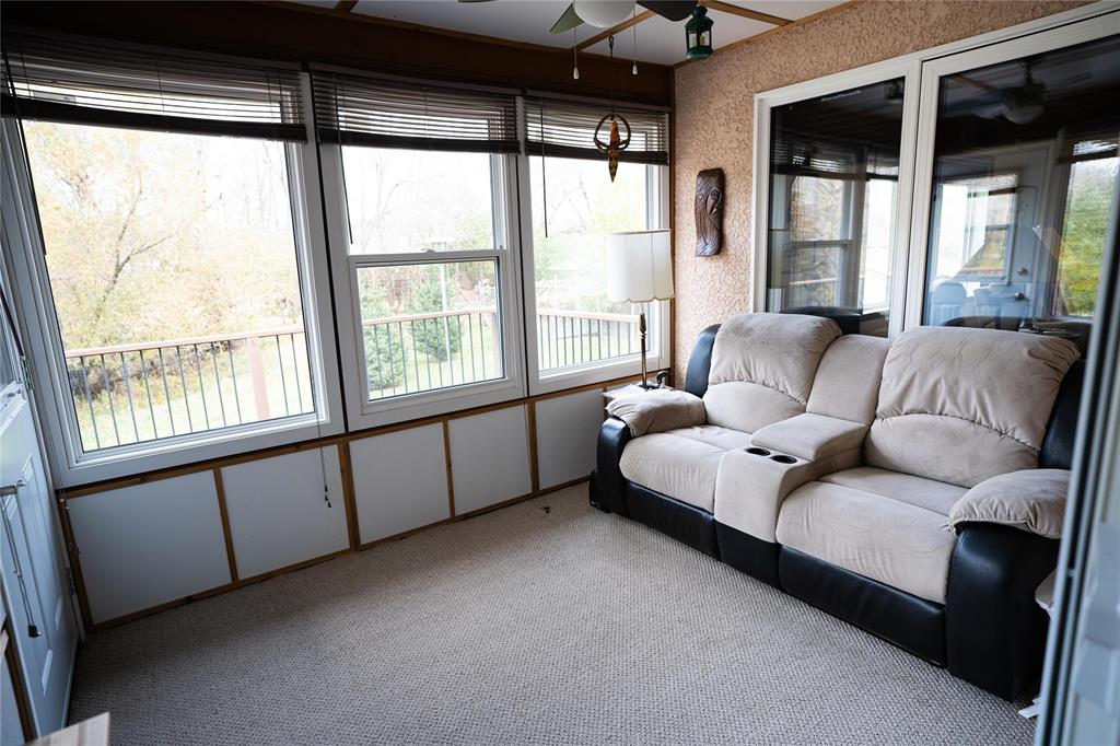 Large deck with access from the 3 season sunroom provides an excellent view of the creek below.