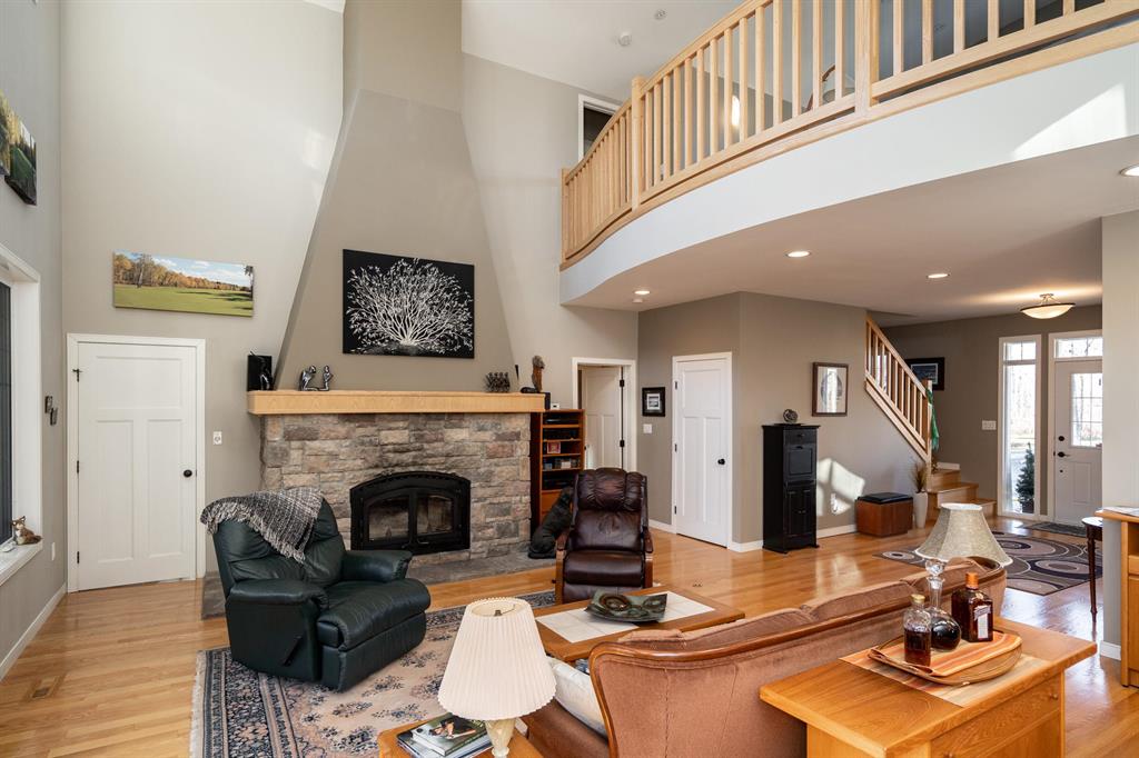 Golf Course Dream Home with Modern Elegance. Discover this stunning 3082 sqft home backing onto the 17th hole of the prestigious Grand Pines Golf Course. This architectural gem features an eyebrow exterior design with welcoming front and rear porches, perfect for enjoying serene golf course views. Inside, the open-concept floor plan is complemented by rich hardwood flooring throughout. A large stone fireplace serves as the centrepiece of the main living area, offering warmth and sophistication. The oversized double garage includes an upper-level studio/office with 3 piece bathroom, ideal for creativity or working from home. Each of the three spacious bedrooms is designed for luxury, boasting its own ensuite bathroom plus walk-in closets on upper level bedrooms. A large loft overlooks the main living space, adding charm & versatility. This home is the perfect blend of elegance and functionality in an unbeatable golf course setting. Don’t miss your chance to own this breathtaking property!
