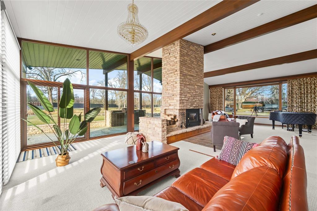 Incredible opportunity to own this 10,442 sqft estate situated on 44 acres, nestled on the scenic red river. The home was architecturally designed with floor to ceiling windows throughout, updated kitchens, stunning millwork, indoor pool + hot tub with a newer 75 year metal roof. The property is surrounded by a permanent state-of-the-art dike for flood protection and has systems that allow you to live completely off the grid. The uniqueness of the property makes it the perfect opportunity for an entrepreneur with its multiple out buildings. It has an 8 stall horse stable, multiple garages that could easily handle a large car collection and more than enough space to use as a storage yard for a landscaping business. The estate would be an ideal candidate for a wedding venue or event space, multiple yurts on the river bank or many other entrepreneurial ventures.