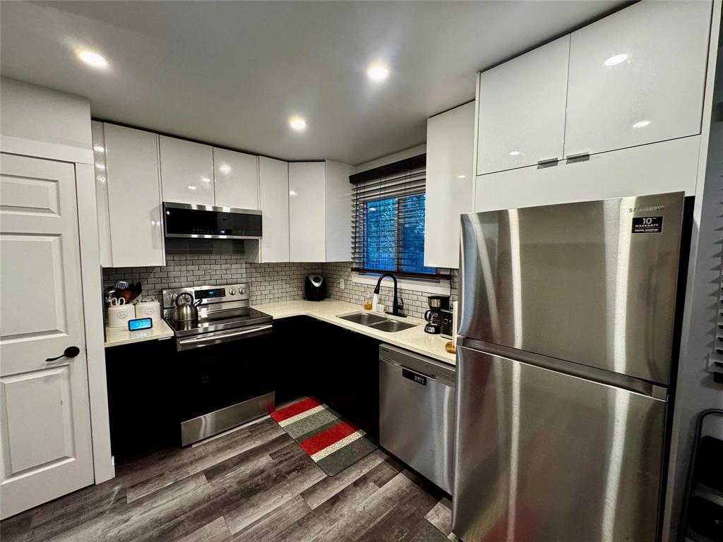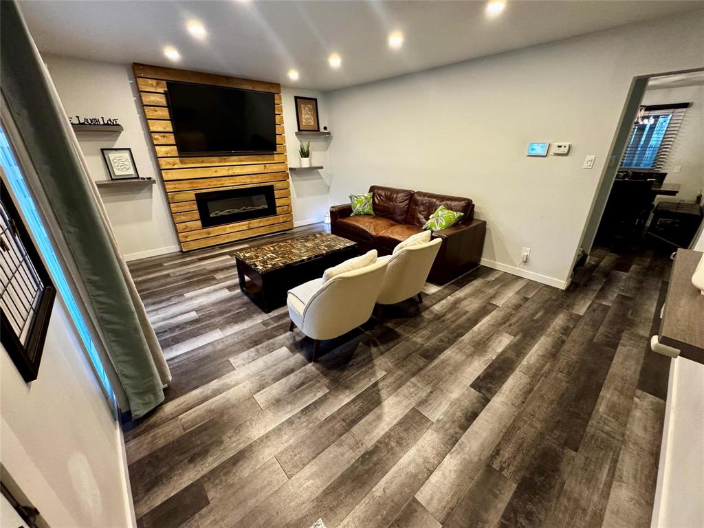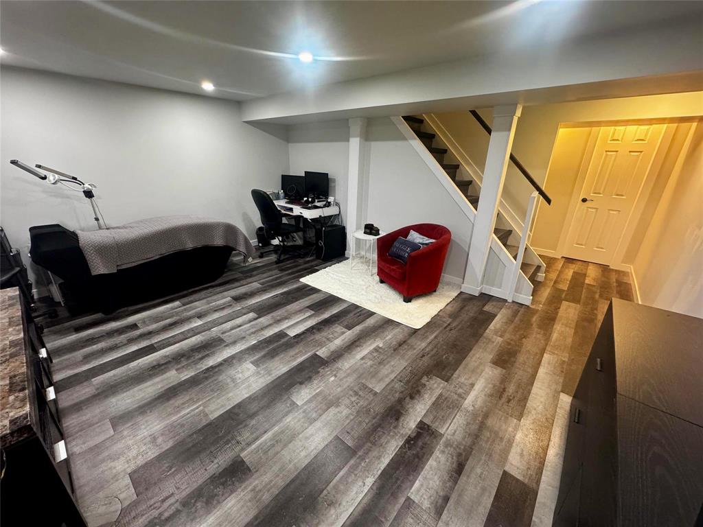 Updated 2 storey side by side in the Maples. Includes 3 bedrooms on the second floor with full washroom. Modern, up to date, kitchen includes newer stainless steel appliances. Finished basement with large recreation room perfect for entertaining. Washrooms include modern finishes. Beautiful entertainment/fireplace in living room. Newer front loading washer and dryer included. High efficiency furnace. Close to schools, buses, and parks. Front driveway. Nothing to do but to move in!