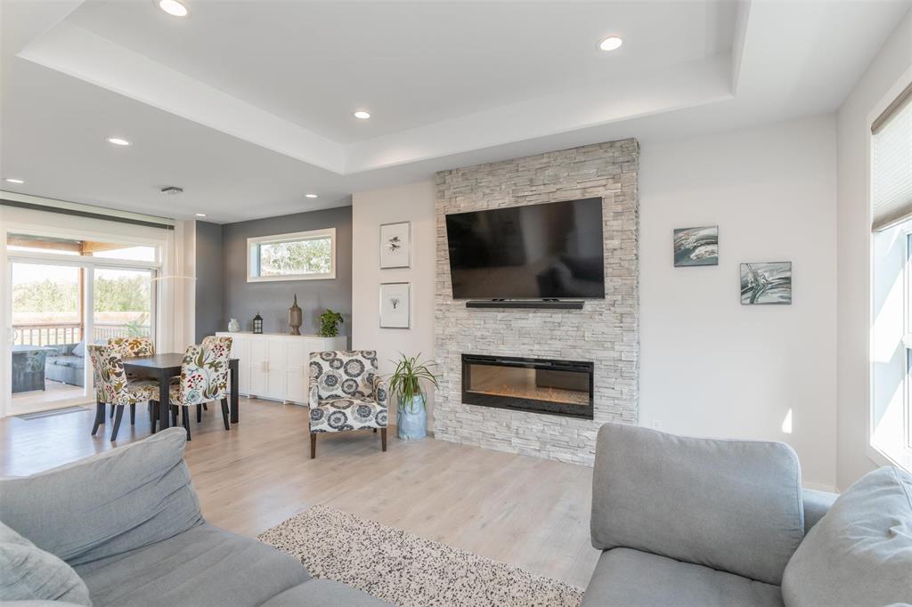 SS Oct 2nd. Open House Sun Oct 5th 2:00–4:00. Offers Oct 8th @ 6:00 PM. Welcome to 16 Silver Crescent in the highly desirable town of Oakbank. This exceptional, extremely well-maintained 1,445 sq. ft. custom Schulz Homes offers 5 beds & 3 full baths with thoughtful design and premium finishes throughout. The main floor features 9' ceilings throughout. The open-concept kitchen, living, and dining area is bright and inviting. The kitchen features maple cabinets, granite countertops, and a large island, while the living area includes a 10' trayed ceiling, linear fireplace, and sleek glass railing. Heated tile in the upstairs baths & front entry adds comfort. The primary suite includes a 3-piece ensuite & walk-in closet, while two additional beds, a 4-piece bath, & main floor laundry complete the level. The lower level offers a large rec room, two spacious beds, a full bath, & electric fireplace. The space remains ready for your finishing touches. Outside, enjoy gorgeous sunsets from the west-facing 18’ x 12’ covered deck, a 32' x 18' Barkman stone patio, a fully fenced backyard, professional landscaping, and a triple attached garage. The home sits within walking distance to schools, parks, and amenities.