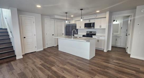 Suite A is 1820 sq ft with 3 bedrooms, 2 bathrooms and a garage.