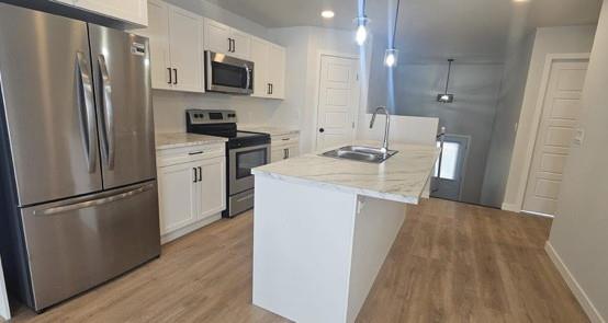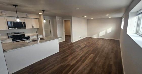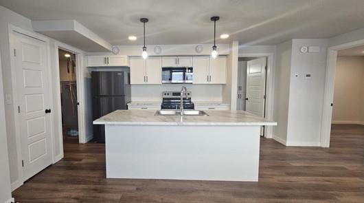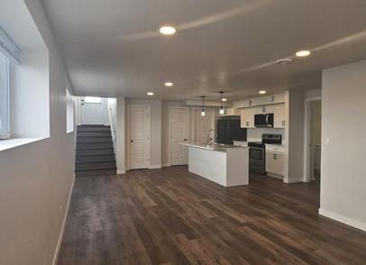 Suite B is 950 sq ft with 1 bedroom, a bathroom and a garage.