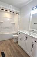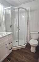 Suite C is 910 sq. ft, It is a basement suite and has no garage - it has one bedroom, 1 bathroom and a shed.