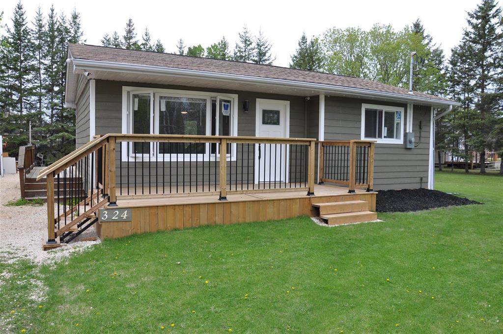 Welcome to 324-325 Strollway in Winnipeg Beach. This fully renovated home is located on a mature beautiful double lot just blocks from the beach. The home features two bedrooms, a spacious living room, eat in kitchen and lots of storage. Renovations include but are not limited to; exterior siding, roof, deck front and backyard, windows, insulation, re enforced floors, flooring, completely rewired home with 200amp service, plumbing, bathroom with heated floors, kitchen, back splash, lighting, doors, thermostats and more. This is truly a turn key home ready for you! The beautiful, treed, mature double lot provides extra privacy and ltones of space for a future garage. There is a new deck on the front of the home and an extra large new deck off the kitchen in the backyard. Enjoy the peaceful evening in the hot tub (negotiable). The modern decor inside and out will wow you. This is one you do not want to miss.