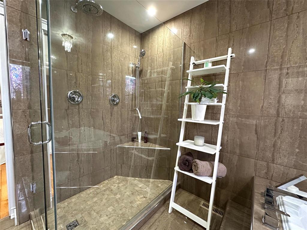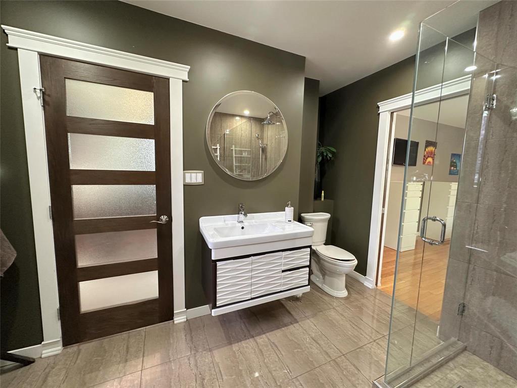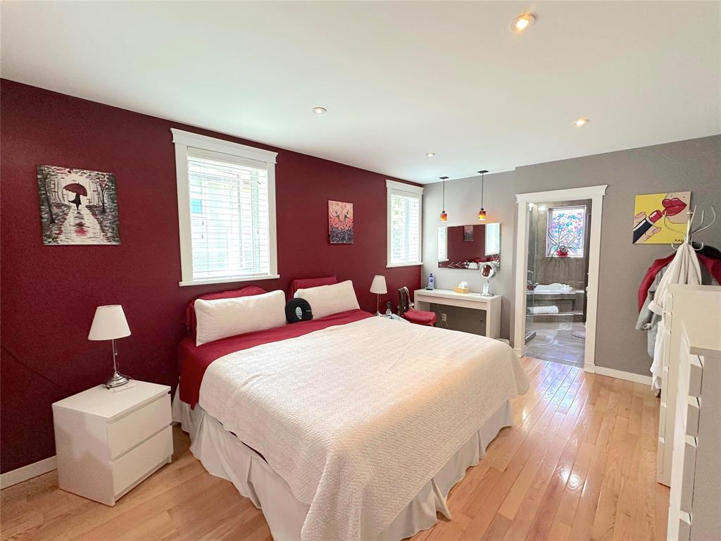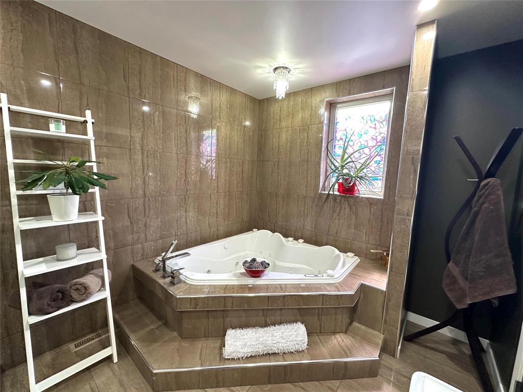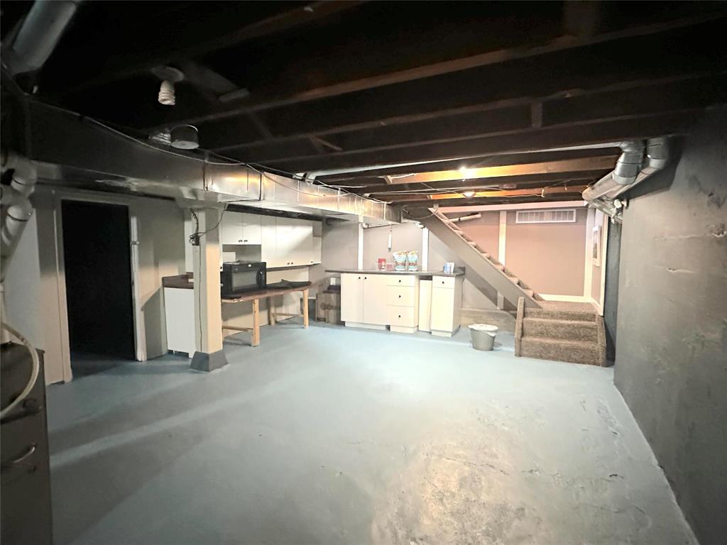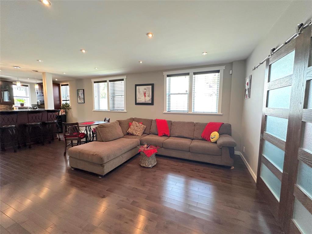 S/S Fri. July 11. Offers reviewed Mon., July 14, 7 pm. Impressive from the moment you arrive in this beautiful, turn-key home! Bright, open-concept layout, living area w/hardwood floors, living room w/electric fireplace, sliding barn doors to 15' x 36.5' front flex space with endless possibilities. Cherrywood kitchen w/built-in oven, microwave, dishwasher, under-cabinet lighting, appliance cabinet, 2 tier island w/built-in cooktop, sink, overhead lighting, bar top, dining area. Huge 11.5'x16.5' bedroom w/glass pendant lighting, access to luxurious spa-like bathroom, floor-to-ceiling ceramic tile, glass walk-in shower w/rain & handheld shower heads, 2 person whirlpool tub with air/jet features. Main floor laundry, 1 full bath, 2 half baths. Fully fenced yard, 11.5'x11.5' composite deck, 12'x21.5' stone patio & walkway, o/s 16'x33' garage w/storage, workshop/lounging space. Low maintenance brick & stucco exterior, newer front windows & door, updated furnace, c/air, spray foam insulation in main living area. Was previously a hair salon, purchaser to do their own due diligence regarding commercial use. Full basement except under former salon area. Close to schools, public transportation, shopping & more!
