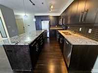 SS:NOW! Offers as received. An incredibly sunny 1016 sq ft condo in the community of Bridgwater is available now! Built in 2015, this building features a fitness facility and rec room, 24-hour security, and visitor parking. #114 is an accessible first floor unit with a bright and beautiful balcony facing southwest. The impressive kitchen has a large island with storage and breakfast bar seating, granite countertops, trendy tile backsplash, and a suite of stainless steel appliances. Feel right at home in the open concept dining room / living room, with a luxurious electric fireplace and built-in living room shelving and storage. Two bedrooms of almost equal size give you flexibility, and the spacious full bath has adjacent access to your very own in-suite laundry. One covered parking spot is included in your low condo fees - also included are your contribution to the Reserve Fund, insurance for the common area, landscaping/snow removal, management, and water. To make your life easier, you will receive a $500 move in bonus when you buy! Call today!