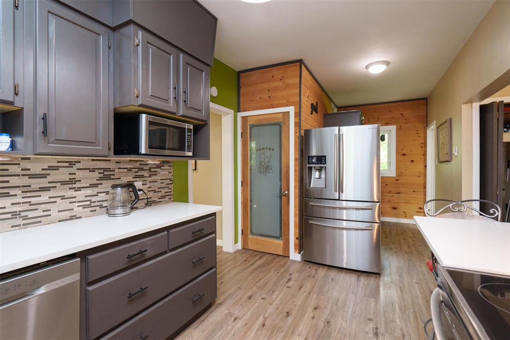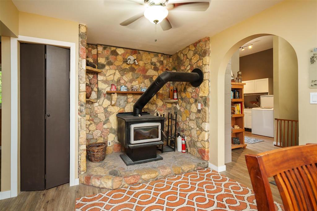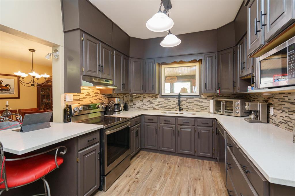 Boasting 4 bedrooms (potentially 5) and 3 bathrooms, this immaculate home features a gorgeous open-concept kitchen with quartz countertops, a generous dining area with a cozy WETT-certified wood stove, and a massive entertainment-sized living room with a propane fireplace, ideal for making memories in every season.