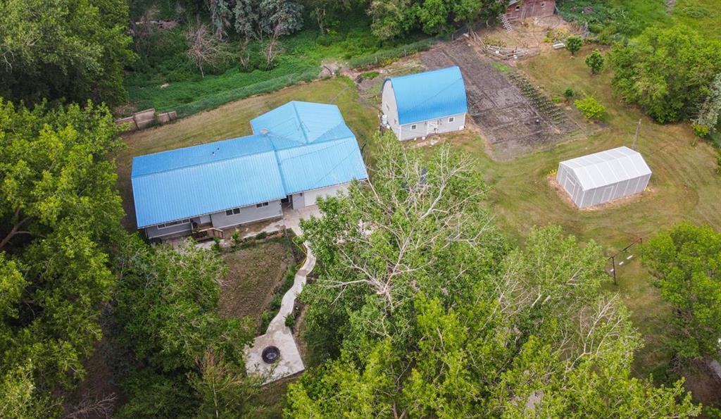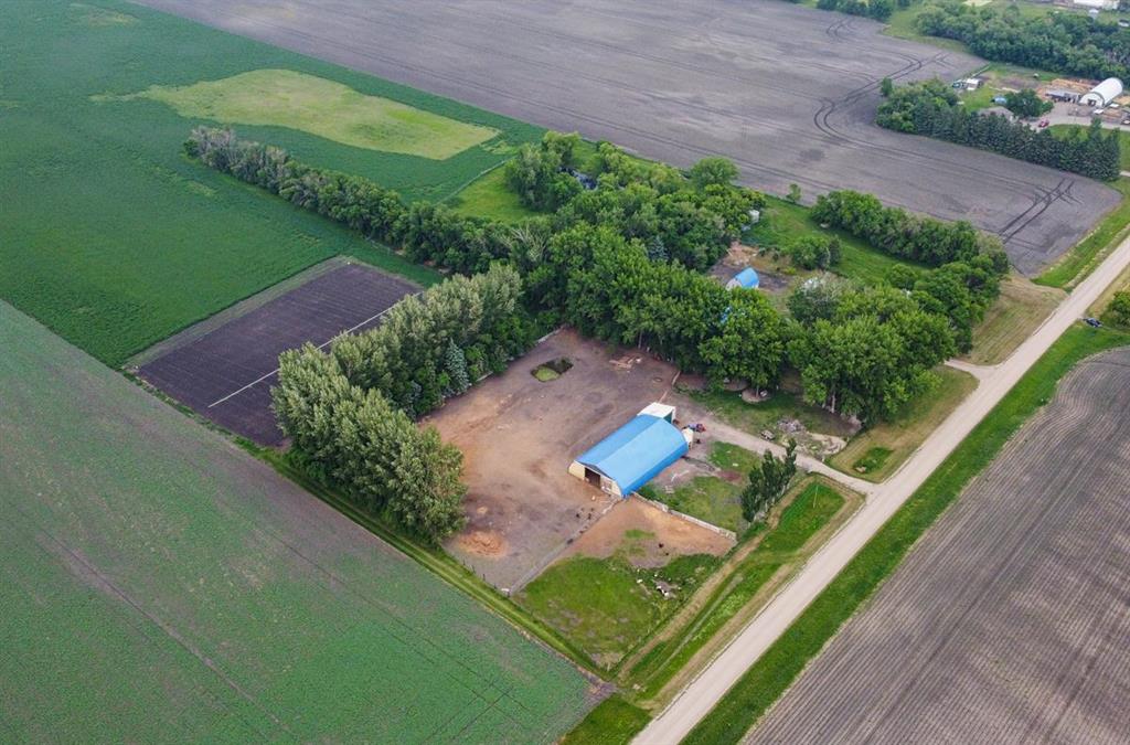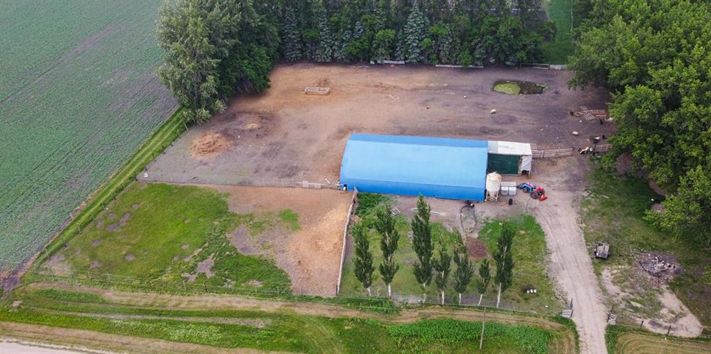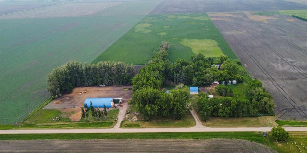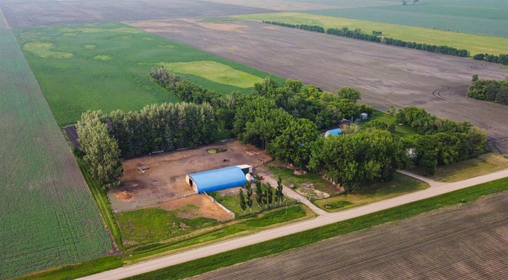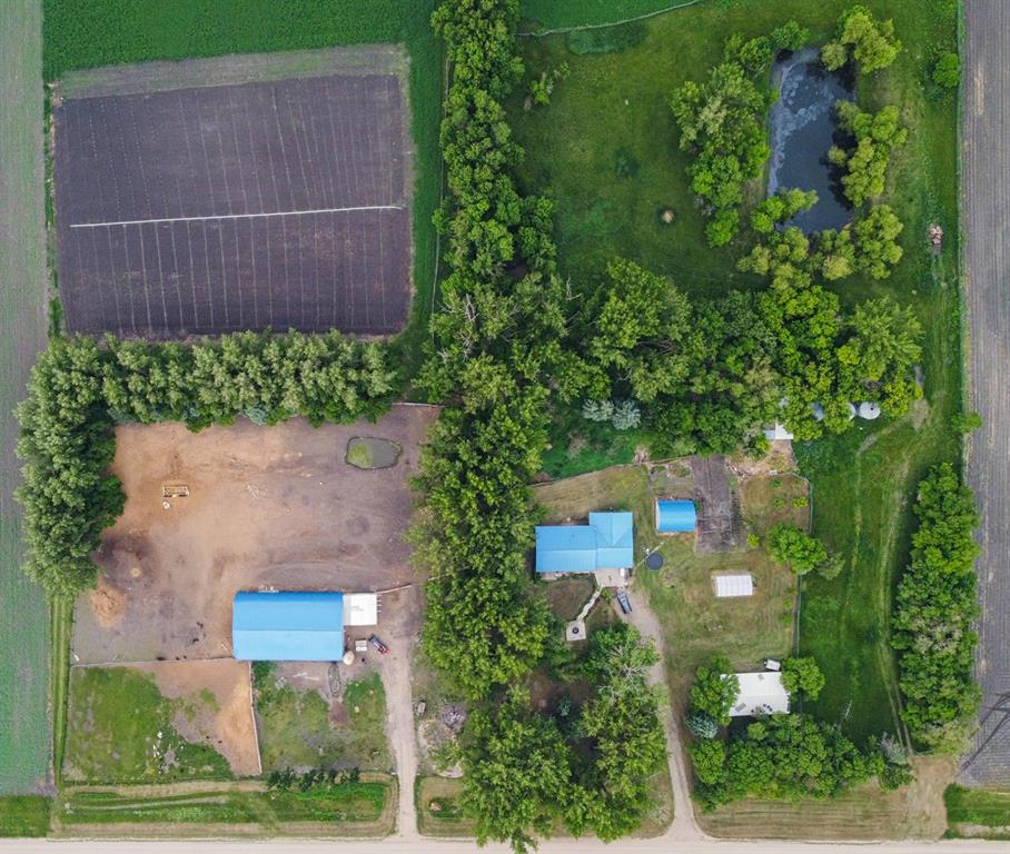 Incredible opportunity to own a turnkey hobby farm on 40 acres with a fully finished bungalow and double attached garage. The home offers 3 bedrooms on the main floor, 2 more in the basement and 2 full baths. The lower level, completed in 2020, features in-floor heat for added comfort. Recent updates include a 5-year-old furnace, central air, new hot water tank 2024 and washer and dryer 2025. Enjoy municipal water, a holding tank with yearly pump-out and a septic field at the back of the home. Powered by 150-amp service, this well-equipped property is ideal for a variety of agricultural uses. The insulated Quonset currently houses approx. 200 sheep and chickens. A cement-floor red barn is ready for 20–24 cows (needs some finishing), while the powered blue barn is perfect for raising chicks. The land features 4 years of alfalfa, 1 acre of vegetables, and 5 fenced acres for pasture or livestock. Additional highlights include a detached 3-car garage, 3 grain bins, greenhouse, ride-on mower, sweeper and a tractor with scooper and tiller attachments. In March 2025, water was plumbed to the Quonset to support operations. This is a rare opportunity to own a diverse, ready-to-go farm setup with room to grow.