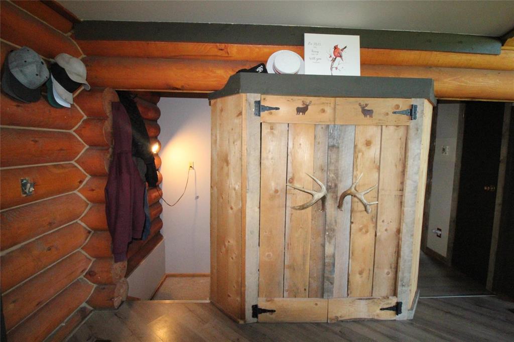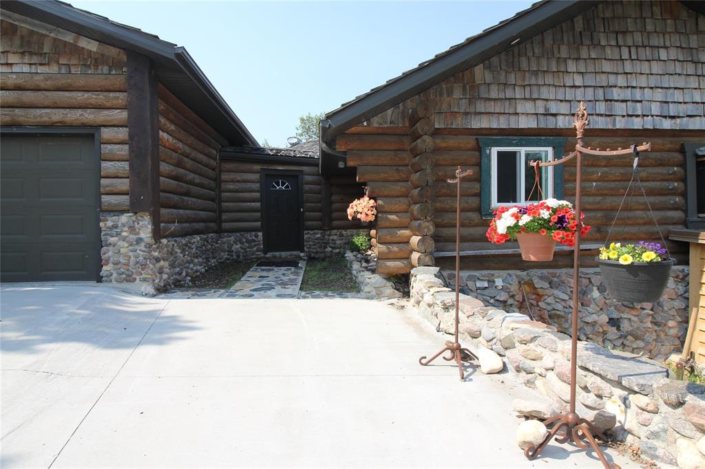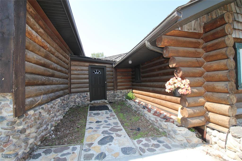 For those who love wood and log homes, this charming style will entice you and make you feel cozy! As you enter a unique porch style breezeway, it welcomes you to the home or garage. Entering the home, there's a spacious entrance with 3 pc bathroom with walk in shower. Just around the corner you are have a sunk in living room with large A-frame windows, gas fireplace and covered deck with a west view for those summer nights. Upstairs is completed with the kitchen, dining and 2 bdrms. The basement is unique with a walk out door for easy access from outside if needed. Basement offers 2 more bdrms and a 4 piece bathroom. Outside you have privacy in a cozy concrete landscaped deck for fires, bbq's and visiting. The 28' x 40' shop is insulated with floor heat, 14' O/H door. 100 amp panel and 2 lean to's aprox.- 12 x 40, 12 x 24. Attached garage has floor heat and is insulated and boarded. Vendor has equipment, tools etc that can be negotiated. This home has lots of character, and is 5 minutes to town just off pavement!