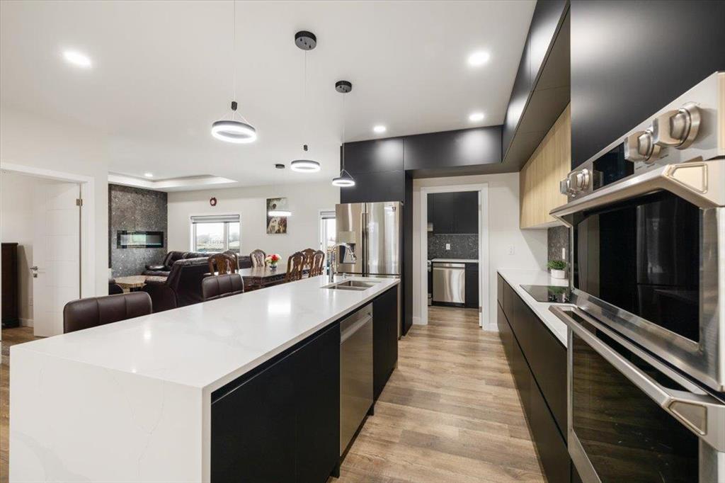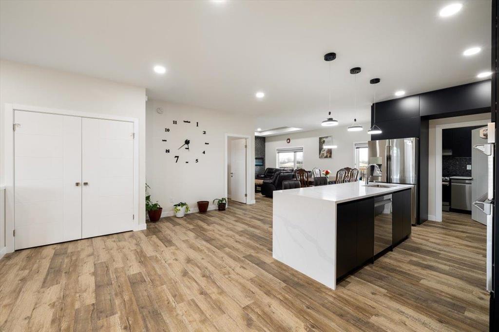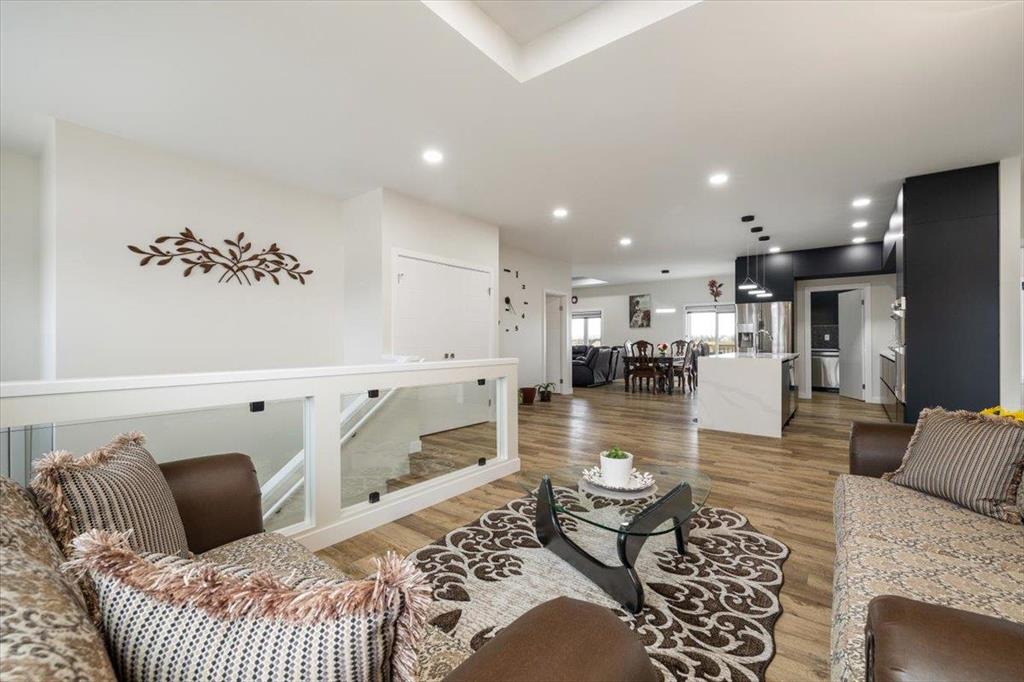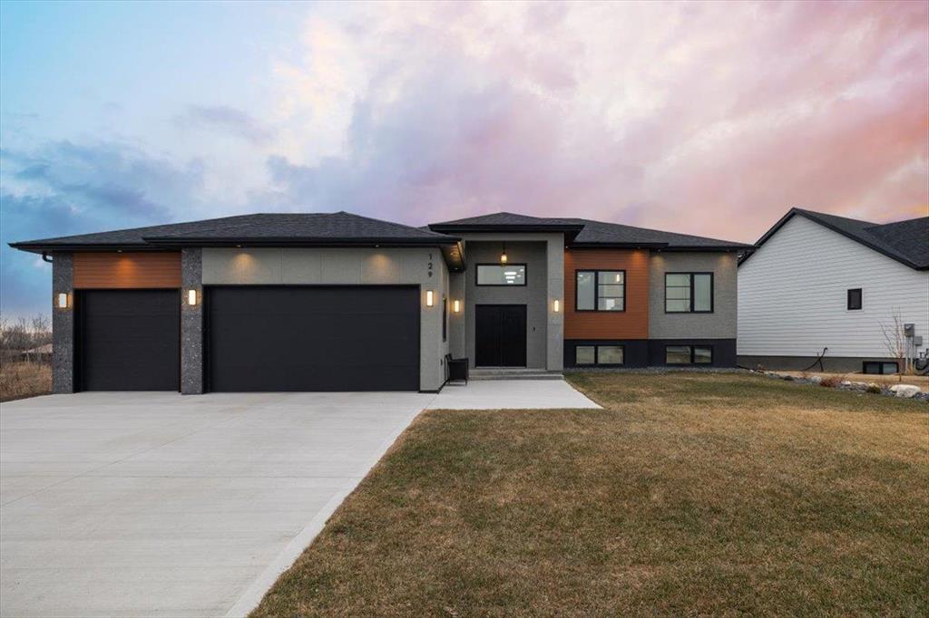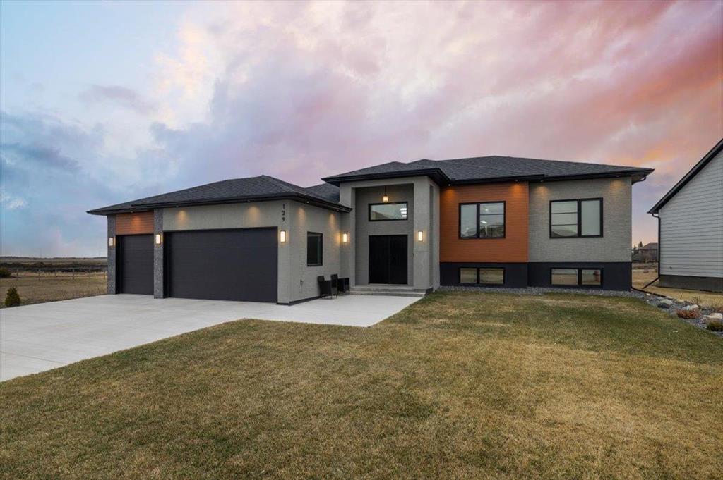 Welcome to 129 Wyndham Estate Dr in Steinbach! This high-end custom-built home is a show stopper, featuring 1860 sqft of luxury living. From the sleek modern dark cabinets and white quartz countertops featuring a waterfall edge island, to the butler's kitchen for added convenience making it simple to host and keep the mess hidden. This home is designed for hosting friends and family. The main floor offers three bedrooms, including a spacious primary with a walk-in closet and ensuite, complete with a stand-alone tub and glass shower. Additionally, there's a 4pc guest bathroom on the same level for your friends and family. Downstairs, the large rec room provides ample space for entertainment and relaxation. You'll also find two more bedrooms and another 4pc bathroom, ensuring plenty of space for everyone. With a 3-car garage and a concrete driveway, there's no shortage of parking and storage options Yard maintenance is easy with a in-ground sprinkler system. Don't miss the opportunity to own this exquisite property. Call to schedule a viewing today!