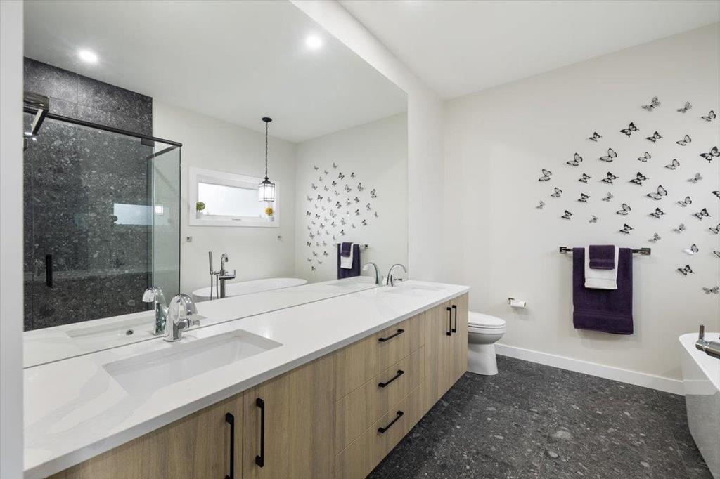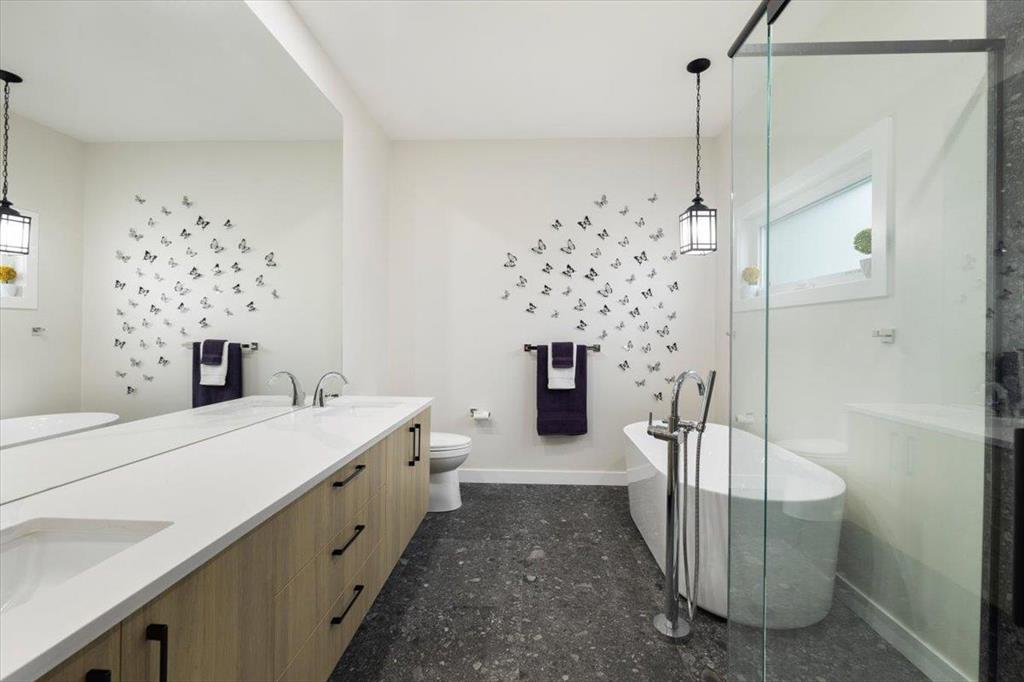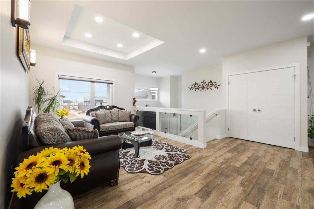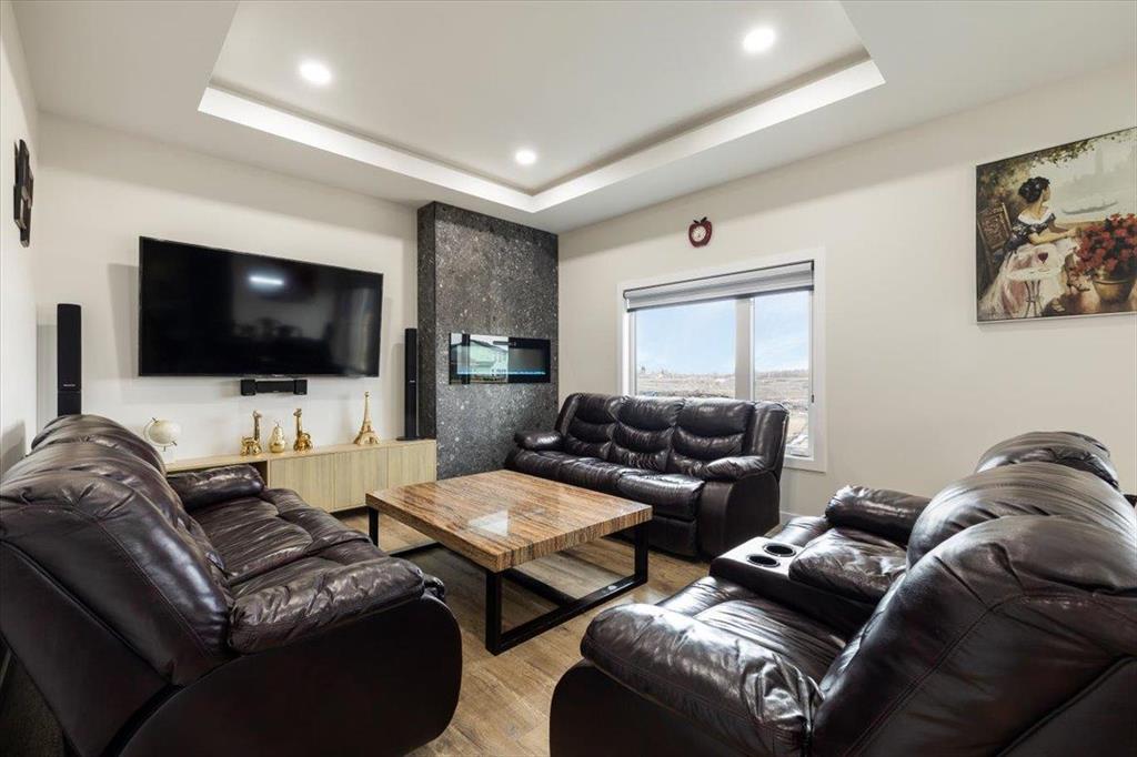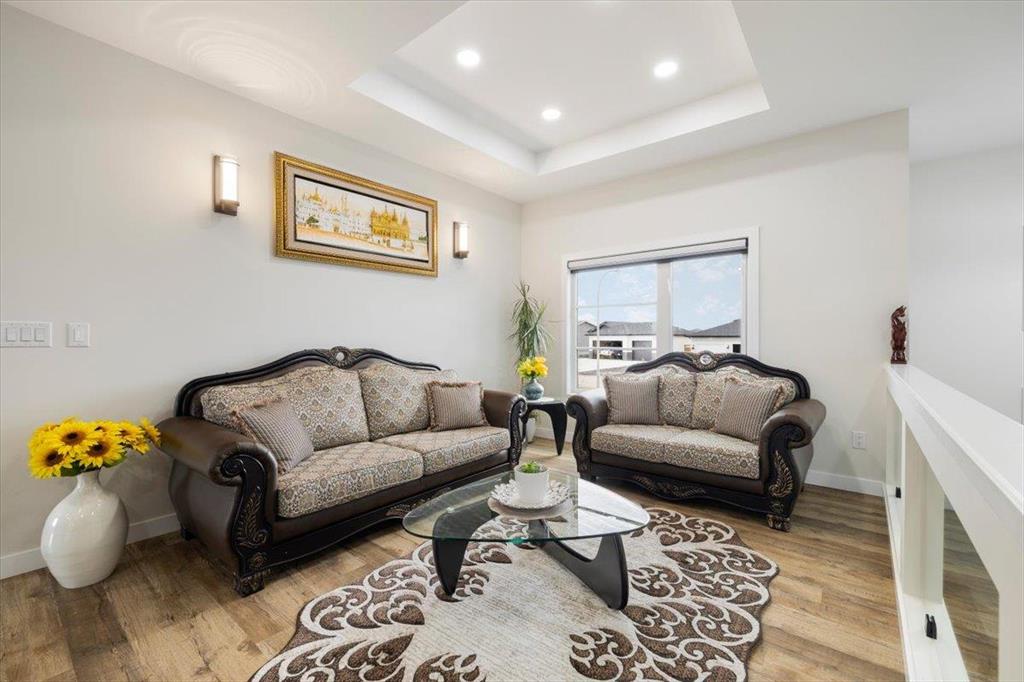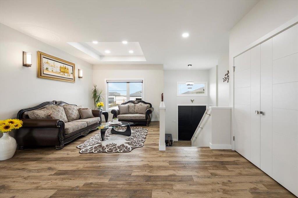 Welcome to 129 Wyndham Estate Dr in Steinbach! This high-end custom-built home is a show stopper, featuring 1860 sqft of luxury living. From the sleek modern dark cabinets and white quartz countertops featuring a waterfall edge island, to the butler's kitchen for added convenience making it simple to host and keep the mess hidden. This home is designed for hosting friends and family. The main floor offers three bedrooms, including a spacious primary with a walk-in closet and ensuite, complete with a stand-alone tub and glass shower. Additionally, there's a 4pc guest bathroom on the same level for your friends and family. Downstairs, the large rec room provides ample space for entertainment and relaxation. You'll also find two more bedrooms and another 4pc bathroom, ensuring plenty of space for everyone. With a 3-car garage and a concrete driveway, there's no shortage of parking and storage options Yard maintenance is easy with a in-ground sprinkler system. Don't miss the opportunity to own this exquisite property. Call to schedule a viewing today!