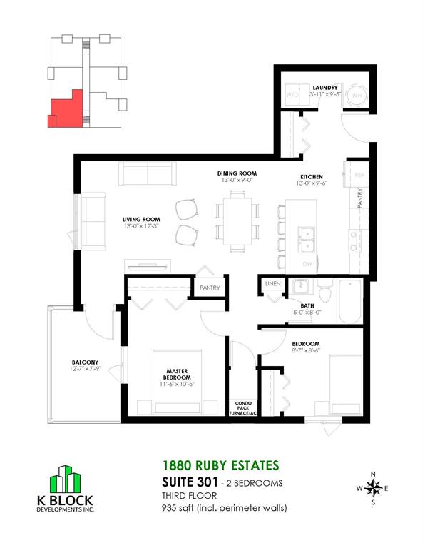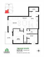 This 2 bedroom corner suite features a spacious entry leading to the galley style kitchen with large island overlooking the open concept dining room and main living area, and plenty of closet space.