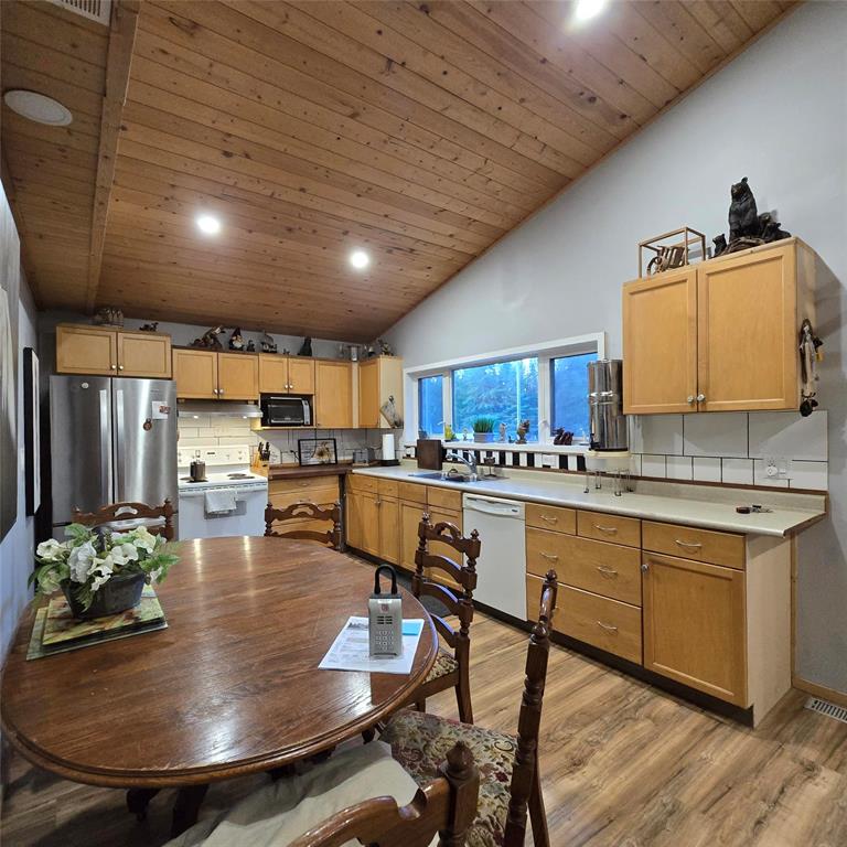 Nestled in the tall trees, just 8 minute walk to the lake, near Victoria Beach, you'll step into your own private retreat. Beautiful vaulted pine ceilings, warm natural light, open-concept design welcomes you. Only 13 years young, this custom-built, one-owner home is the perfect blend of rustic charm and modern comfort, built for year-round living. At the heart of this home is a large country style eat-in kitchen with plentiful wood cabinetry and pantry. The large upstairs primary bedroom, powder room and private deck make an ideal sanctuary for parents while 2 main floor bedrooms and bath provide plenty of room for everyone. Outside, 3 decks and a cozy fire pit invite you to enjoy every moment of the day—sunrise coffee, afternoon lounging, or evenings under the stars. All vinyl clad, 2x6 construction, R20 walls, R40 insulated attic, the forced air furnace supported by HRV system, mini dual-split, a cozy wood stove, and deep well provide easy low-cost living for years to come. Central air cools in summer. An insulated shed and sea-can are tool and toy storage or hobby room. Escape to your new life; enjoy great neighbours, golf & community amenities. Priced below replacement, it's ready for you now!