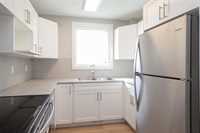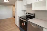 Brand new, TOP FLOOR renovation! These opportunities don't come up very often; live in an established condo complex with wonderful amenities while enjoying a newly renovated unit. Complete renovation with NEW windows, kitchen, bathroom, flooring, paint, appliances and more! Spacious floor plan, flooded with light. Every room has large windows, including the sizeable kitchen. Tasteful and modern finishes include white shaker cabinetry, white oak laminate flooring and subway tile. Simply move in and enjoy the ease of condo living. South-facing patio. Open-plan living, dining and kitchen with plenty of room for full-size furniture. Two sizeable bedrooms with great closets. Four piece bathroom. Large, in-suite storage room, plus great closet space throughout. HEATED, indoor parking. Condo amenities include beautiful, riverside pool with large deck area, well-equipped gym, owners' lounge with space for large gatherings, and more. Act quickly!