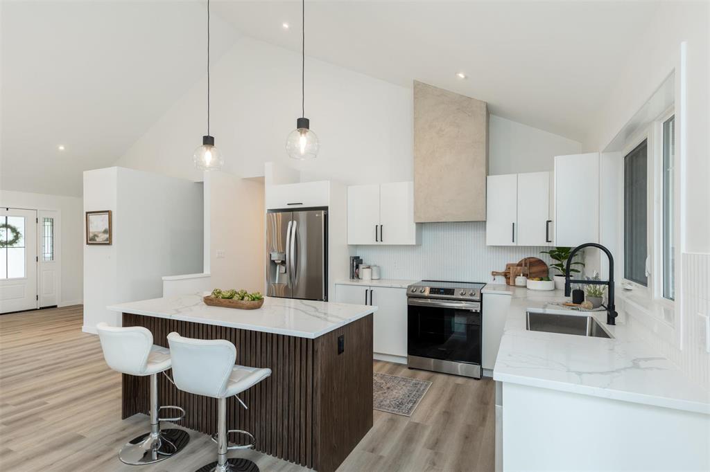 Need 24 hrs for acceptance. Brand New Large Bungalow with Exceptional Features! This stunning newly built bungalow offers impressive curb appeal and is built on piles for long-term stability. The home features 3 spacious bedrooms and 2 full bathrooms, including a generously sized primary suite with a large walk-in closet, dressing area and a full en-suite. Step into a bright, open-concept living space featuring soaring vaulted ceilings that reach up to 15'6" in the main area, creating an airy and inviting atmosphere. The modern kitchen has quartz countertops, stylish backsplash, soft-close cabinets and drawers, a micro cement finished hood fan, and a spacious island, perfect for both cooking and entertaining. Luxury vinyl plank flooring runs throughout the home. Additional highlights include: Main floor laundry, 12' ceiling height in the 24’ x 22’ attached double garage, upgraded pot lights and designer light fixtures throughout, defog LED mirrors in both bathrooms, huge basement with endless potential, landscaped front yard, central air conditioning, large covered front and back decks, ideal for relaxing or hosting and so much more! See feature sheet for a full list of features. Appliances included.