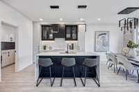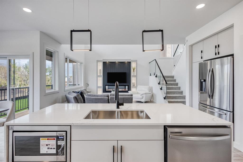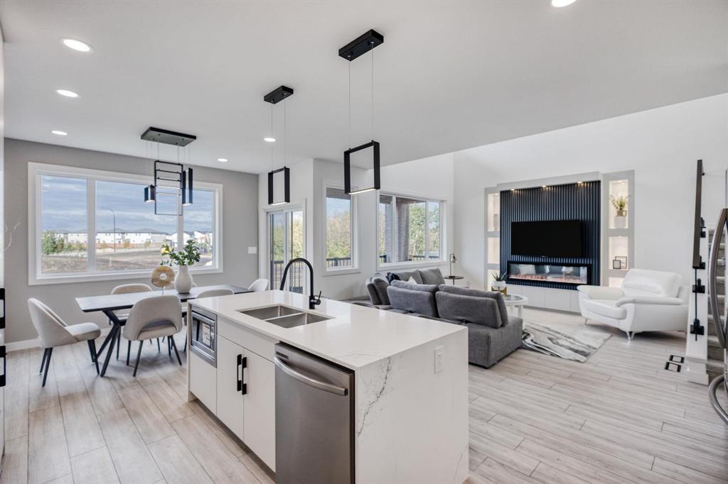 laminate flooring. The kitchen is a dream with beautiful cabinetry, QUARTZ countertops and large breakfast bar island. The large dining room is surrounded by windows letting in loads of natural light. Upstairs, the primary suite offers a huge walk in closet and luxurious ensuite. Two additional spacious bedrooms, a four-piece bathroom, convenient second floor laundry and a spacious loft space complete this flawless home. Don't miss out!