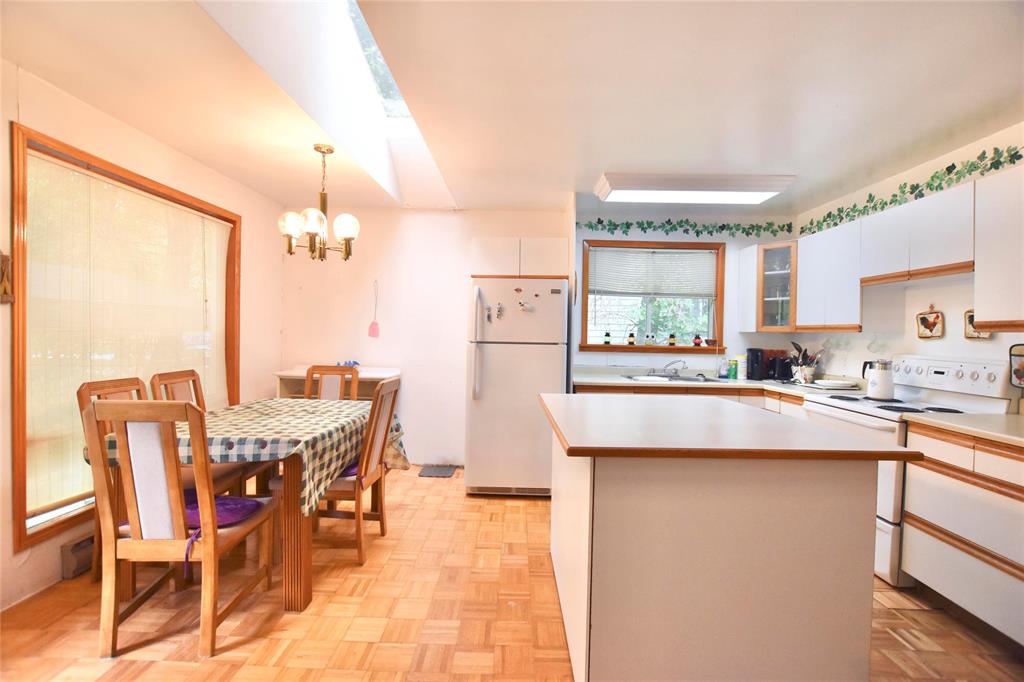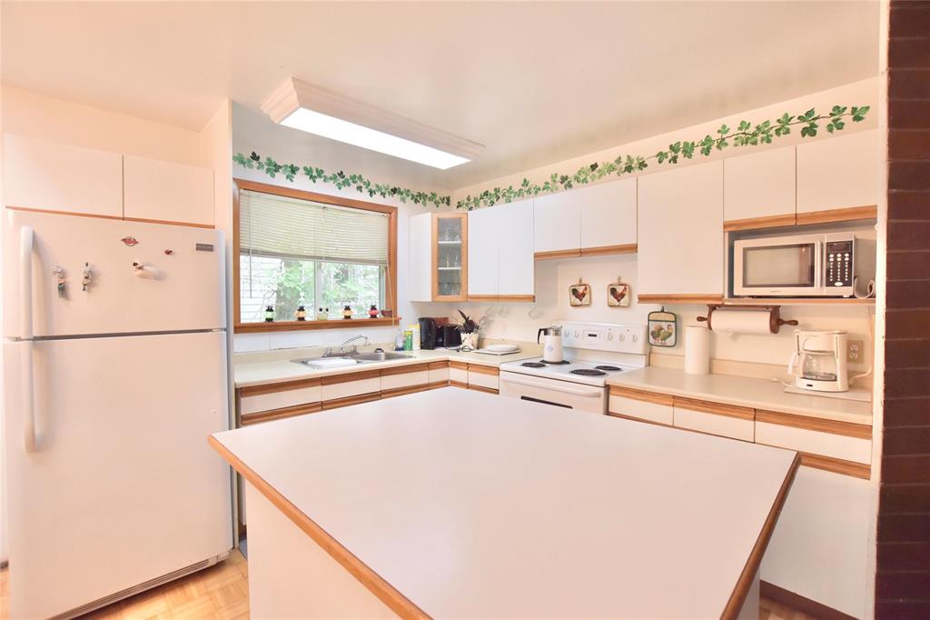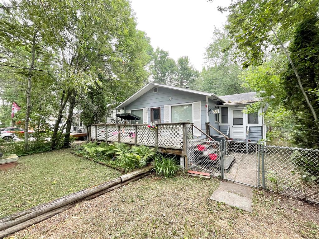 1990's seasonal cottage in Sandy Hook! 3 bedrooms, 1 bathroom + laundry/utility room. Modern open concept floorplan -bright white kitchen with island, dining with skylight, wood-burning stove + electric baseboard heat. The four piece bathroom also offers linen storage. Every bedroom has a closet. The cottage is tucked away amongst mature trees and perennial gardens with a front or back deck to relax on. Access to the front door or side porch is fenced for your pets. While the brick firepit and cute garden shed complete the backyard. This quiet street is a short walk to the lake, a quick drive to the Sandy Hook Golf Course and the amenities of Gimli and more! Quick possession here and fully furnished.