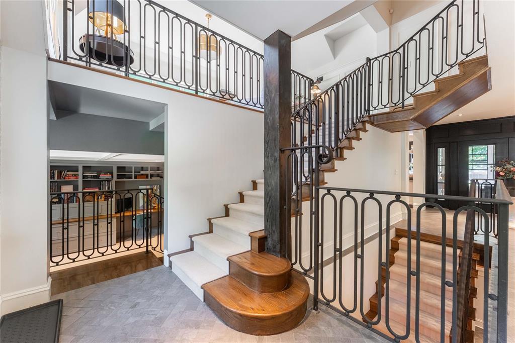 Step into timeless elegance with this classically luxurious North Tuxedo home. From the moment you enter the grand foyer, you will feel the warmth and character that sets this property apart. Stunning woodwork, leaded and stained glass windows, intricate wrought iron details, and beautiful fireplaces showcase the craftsmanship of a bygone era, now seamlessly blended with modern upgrades. The soaring, custom-detailed ceilings in the mezzanine family room create an awe-inspiring space, while the gourmet kitchen offers abundant cabinetry, generous counter space, and a bright eating area overlooking the backyard. The formal dining room features exquisite stained glass, adding a touch of artful charm. The expansive living room, anchored by an ornate fireplace, invites elegant gatherings. Outside, enjoy a beautifully landscaped yard, a screened sunroom, and an inviting patio for perfect evenings. A double detached garage completes this exceptional home, nestled in the heart of sought-after North Tuxedo. ALL MEASUREMENTS ARE +/- JOGS.