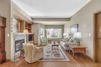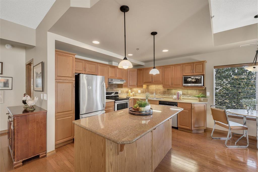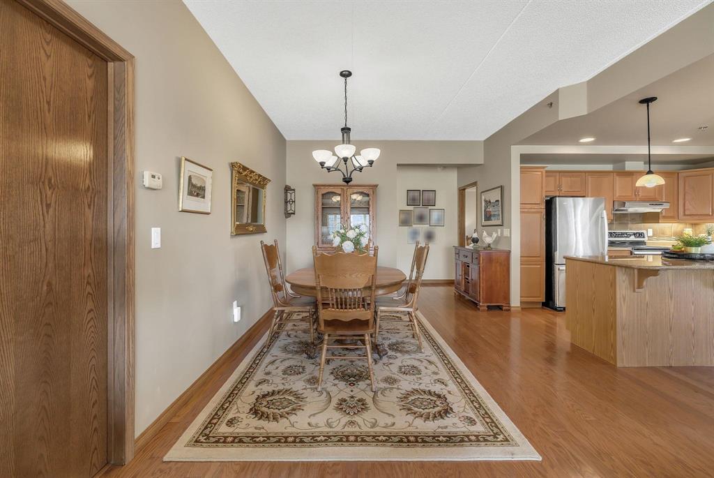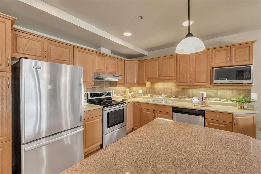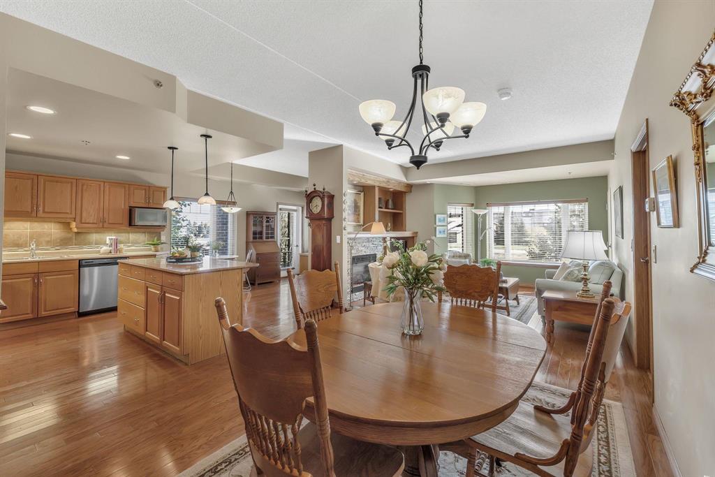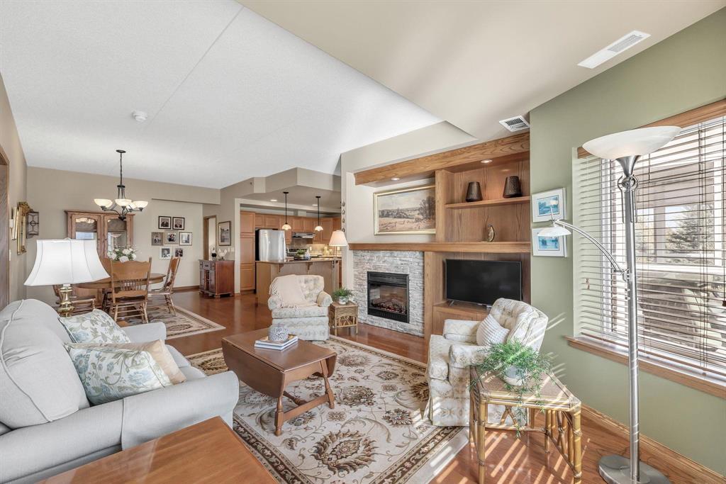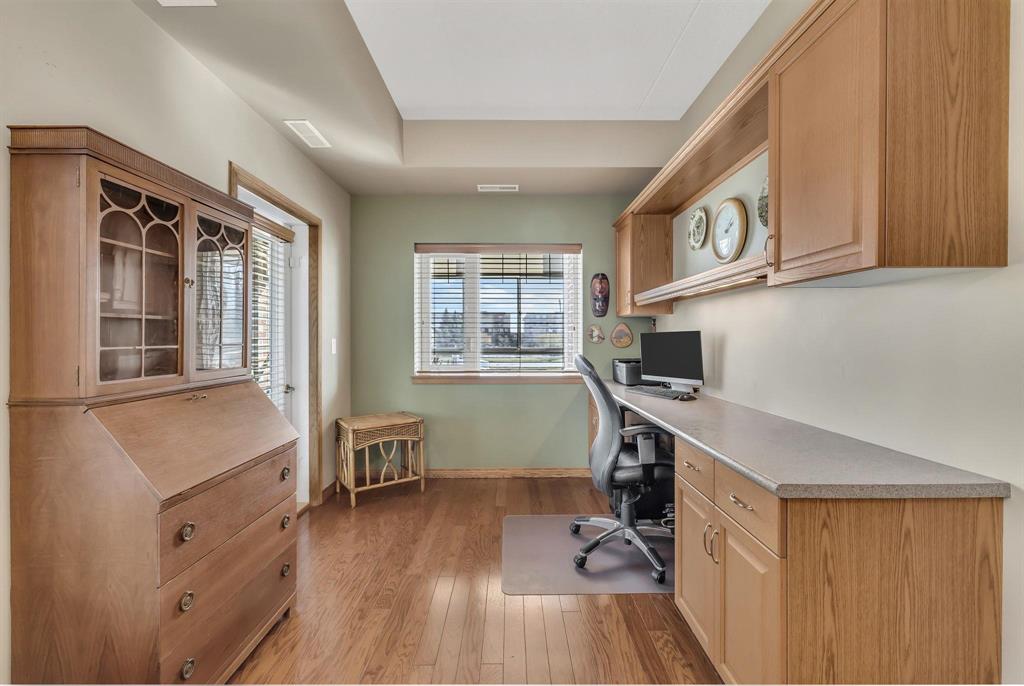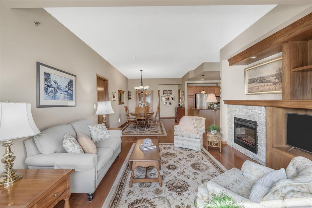 S/S Thurs. Oct. 9, offers Wed. Oct. 15 after 6 pm. This spacious 2-bedroom corner unit offers comfort, style & convenience in a well-located concrete and steel building. Featuring beautiful hardwood floors & an open concept design, the home boasts an eat-in kitchen w/ample cabinetry, ss appliances & a granite-topped island w/breakfast bar. An office nook w/built-in desk & cabinetry flows into the wraparound enclosed balcony, showcasing panoramic views—perfect for relaxing or working from home. The dining area opens to a welcoming living room with a large window, custom built-in display shelving & electric fireplace w/stone surround. The bright primary bedroom includes a WICC & a 4-piece ensuite w/double vanity & walk-in shower. A well-sized guest bedroom, additional 4-piece bath, and laundry/storage room complete the layout. This pet-friendly building (small pets only) features fantastic amenities including a gym, games/party room, library & guest suite (located in building 270), underground parking stall #84 with car wash. Storage locker (#87) on the same floor. Just steps from shopping, restaurants & movie theatre. Minutes to Fort Whyte & off-leash dog park...this is condo living at its best!
