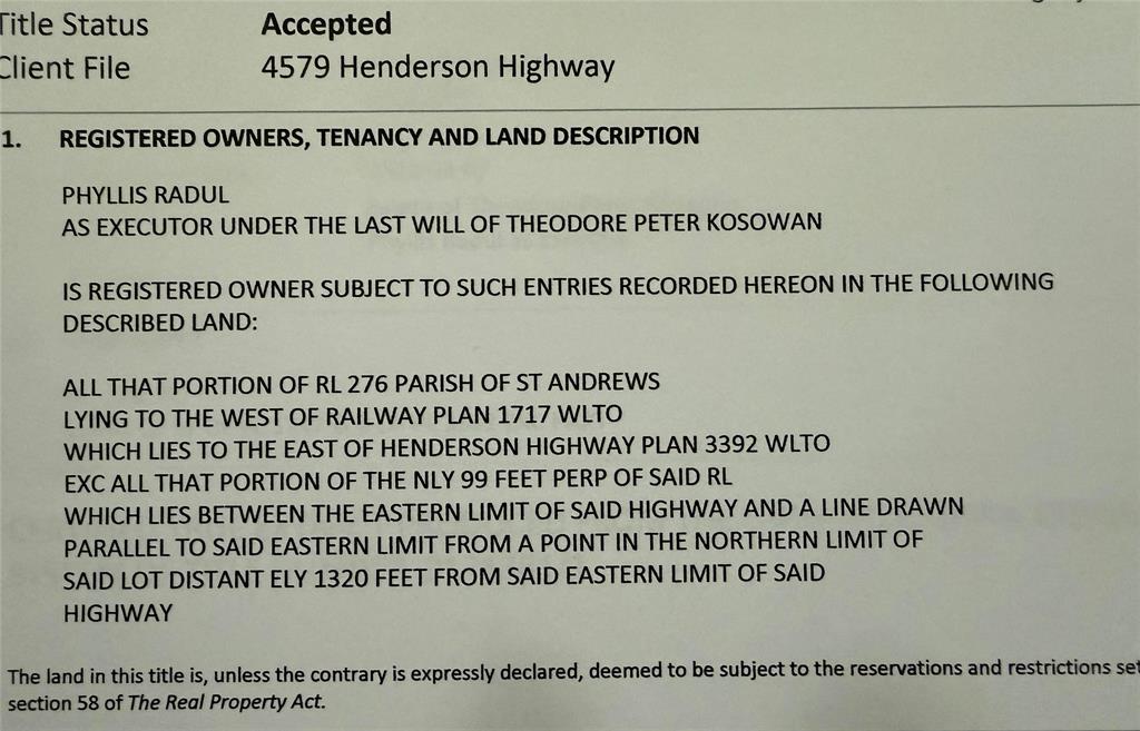 Ask your Realtor to touchbase me before going on the property. Estate sale. Here is an opportunity to buy this parcel of land to either use the conditional approval of subdivision obtained by the seller (expires 2026) for 3 lots or keep it as one 9.39 acre lot to build your dream home on. It is close to Winnipeg (10 min drive), but has the feel of a small town. It is perfect to be away, but not to far from the urban hustle. Survey and conditional approval in supplements but incl a requirement to build a cul de sac off Marvin Gardens Rd for the 2 back lots (if subdivided), drainage, etc. Narrow at Henderson and broadens up to the tracks. Beautiful area and adjacent homes are a draw for sure. Home and 2 garages and junk has been professionally cleared off by estate. Seller states hydro and gas remain on front part of property. Quick possession avail. Information deemed reliable, but buyer to do own due diligence.