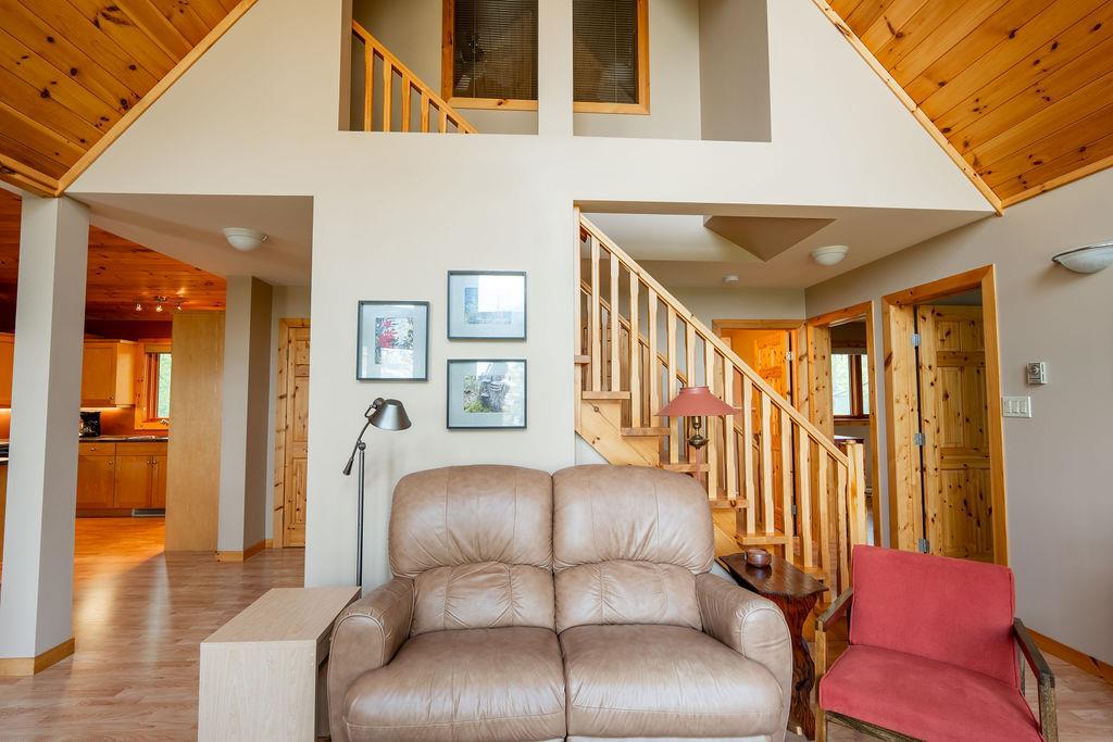 Step inside to discover warm wood accents throughout, high-quality craftsmanship, and an open-concept living space designed for both relaxation and entertaining. Two large patio doors at the back of the home open onto a spacious deck, perfectly positioned to take in breathtaking waterfront views. The upstairs master bedroom with walk-in closet and ensuite bathroom is perfect when you need your own down time. With over 1300sqft of living space, this cabin has it all.