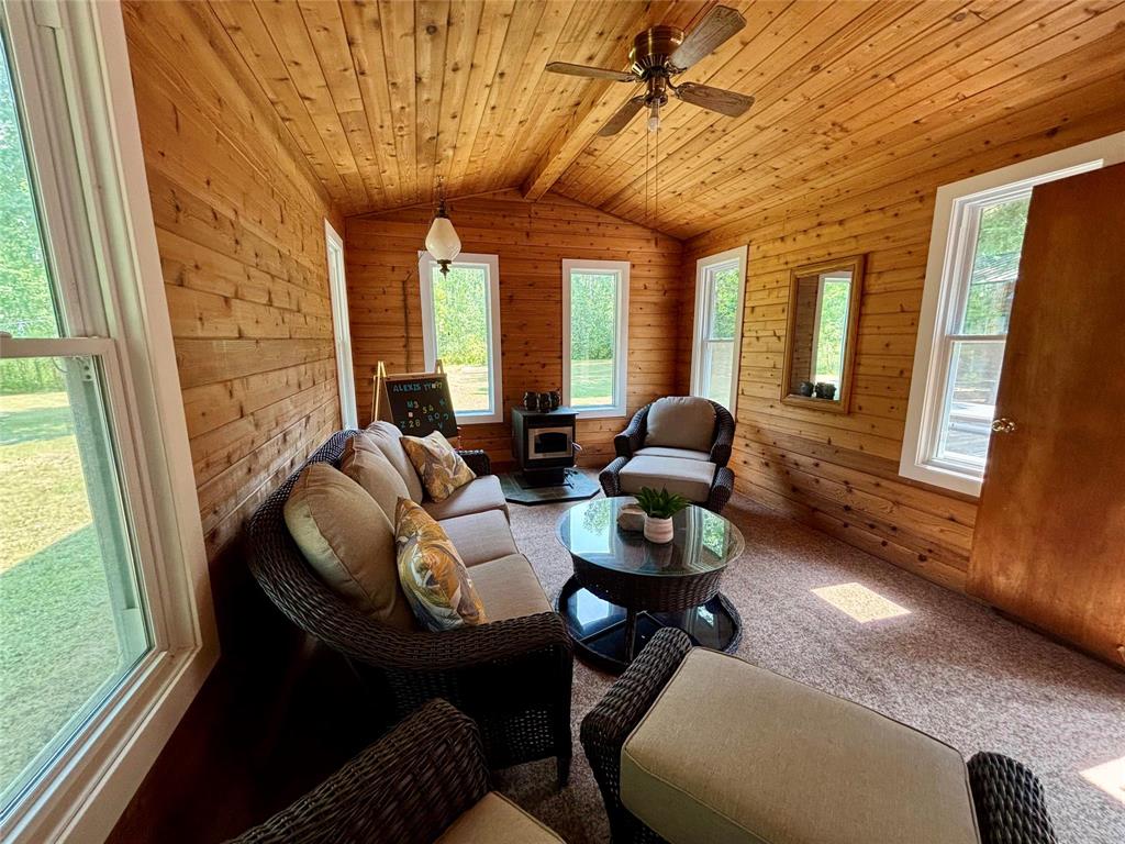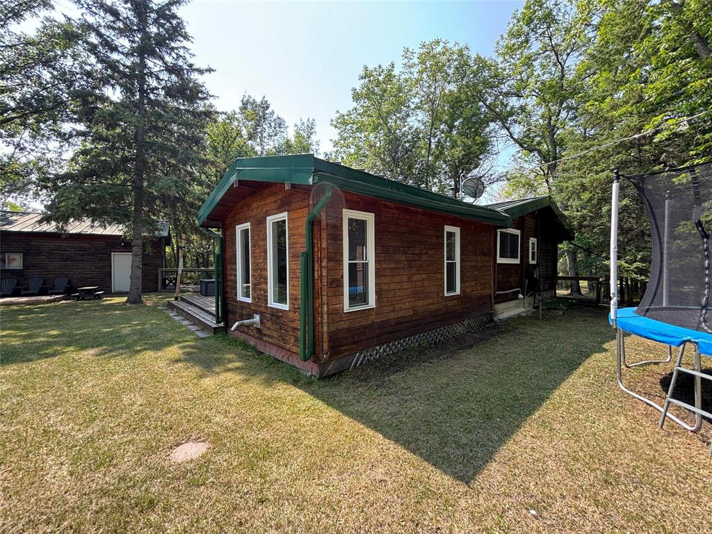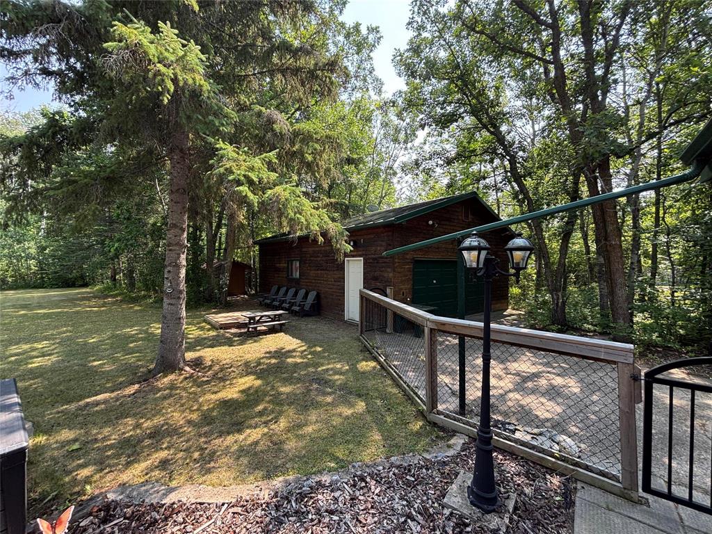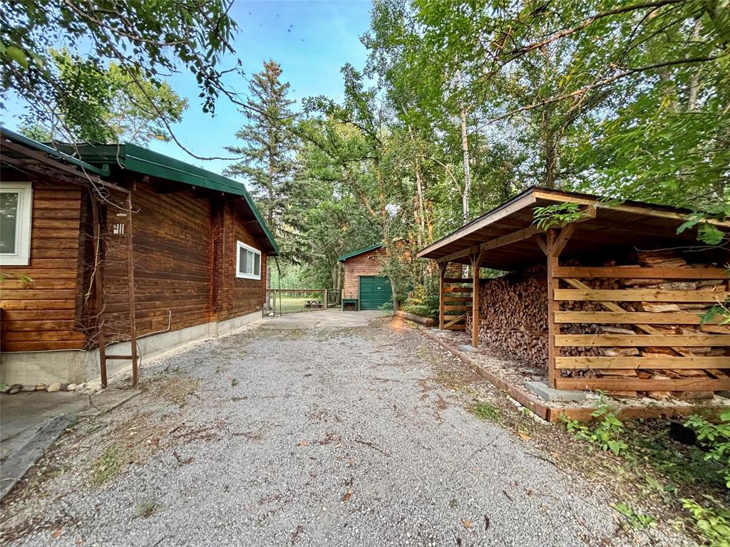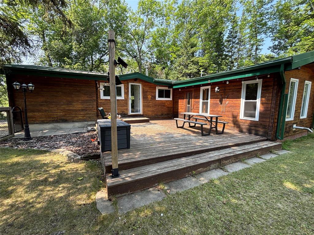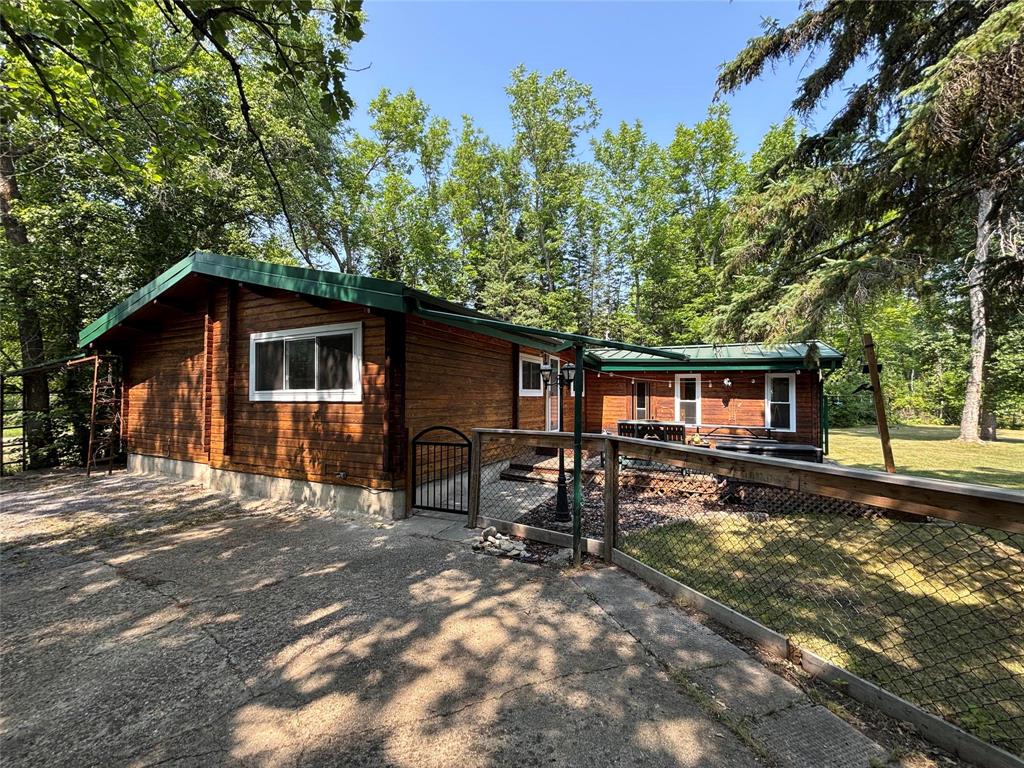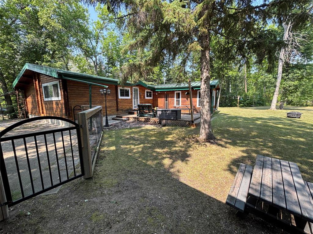 Gorgeous YR 3 BR, 952 SF + 240 SF sunroom. Solidly built Cedar Log home or cottage, on a concrete foundation in desirable Lakeshore Heights! Vaulted ceilings in the open concept kitchen/dining/living area, offer a warm country charm feeling. Perfect blend with a woodstove to cozy up to on those cooler days. There's also baseboard heat and a mini split a/c for all of life's comforts! Additional seating at the kitchen counter breakfast bar. Beautiful dbl pane windows throughout with newer custom window coverings. Details include a 200 amp panel, shared drilled well, washer/dryer, and recently added spray foam insulation in crawl space. Step out onto the back deck and into a 240 SF bright open sunroom or possible bunkie, finished in pine, additional closet space, and a pellet stove for added warmth. Situated on a private park like setting, with a mostly fenced back yard and room for the whole crew. Long granite driveway leads to a double oversized insulated detached garage w/ a workshop, and plenty of room for all the toys. Close to many parks, beaches, trails, stores, Grand Beach Provincial Park, and only a 50 minute commute to city limits! Lake life living at it's finest! Call today!
