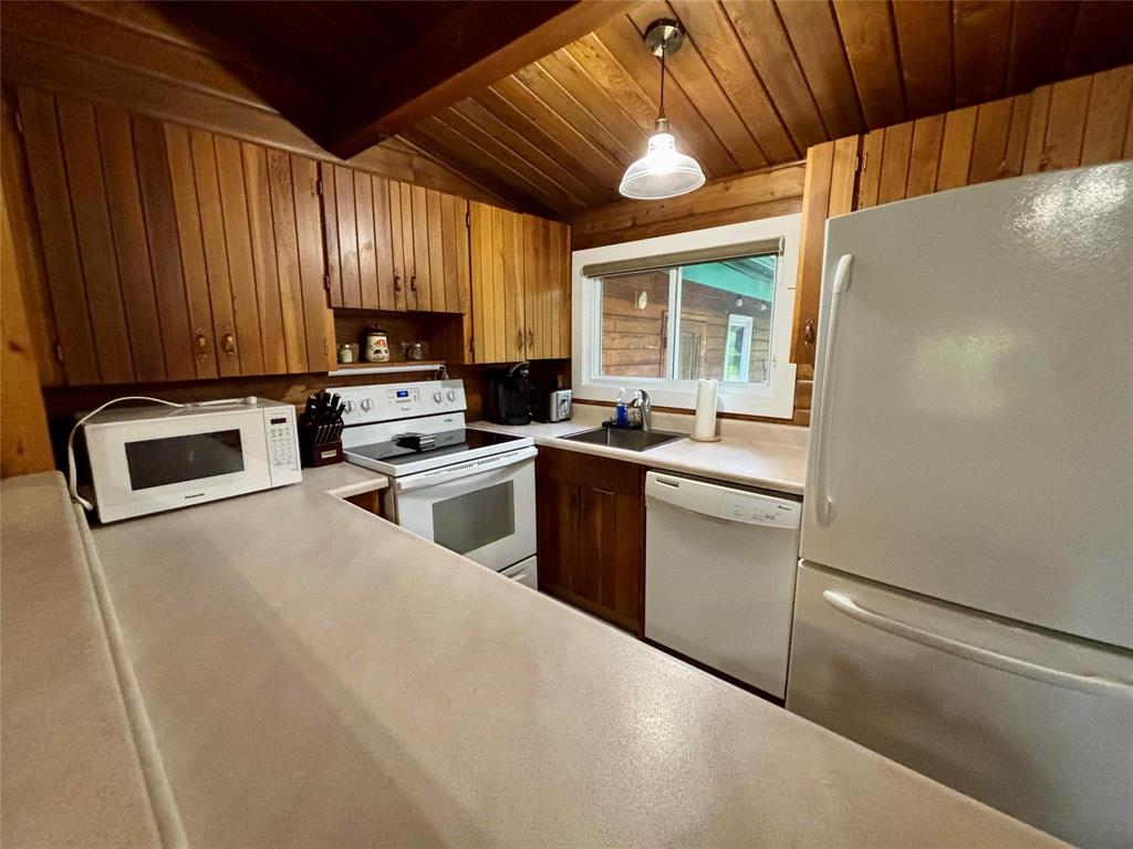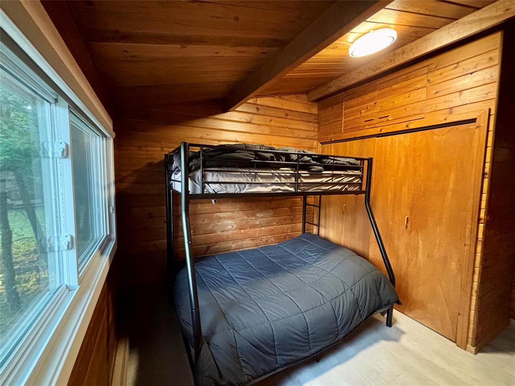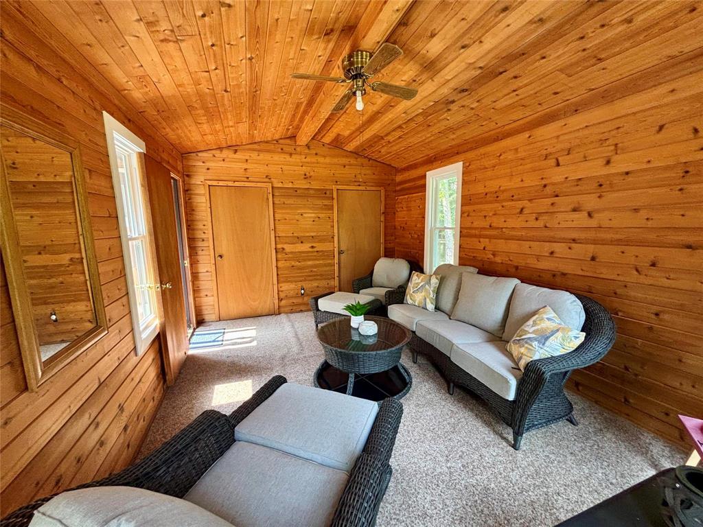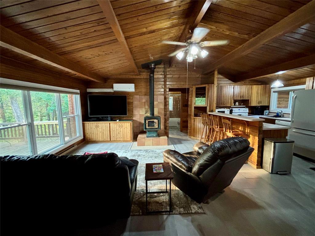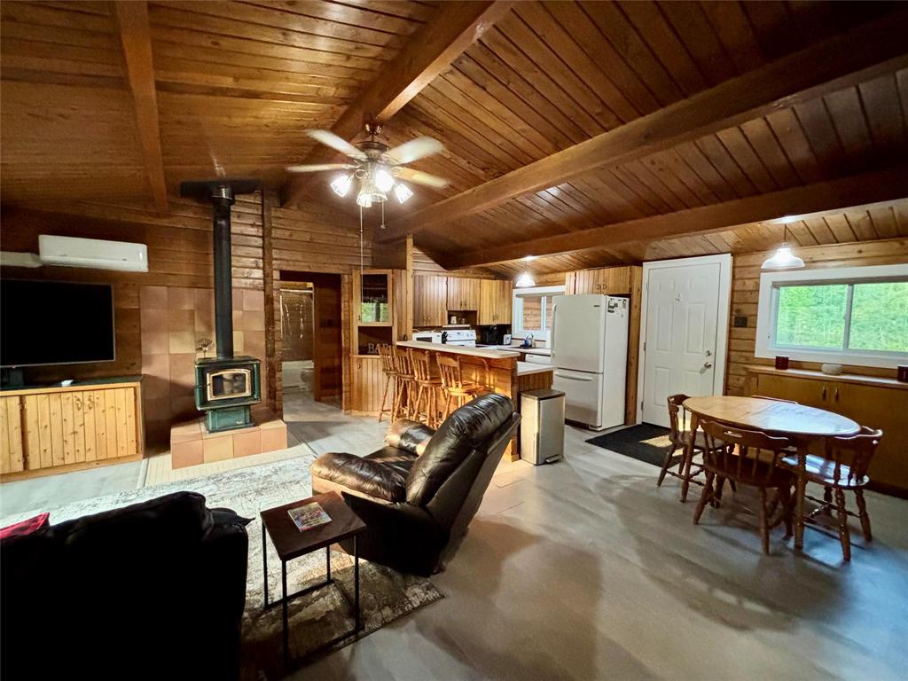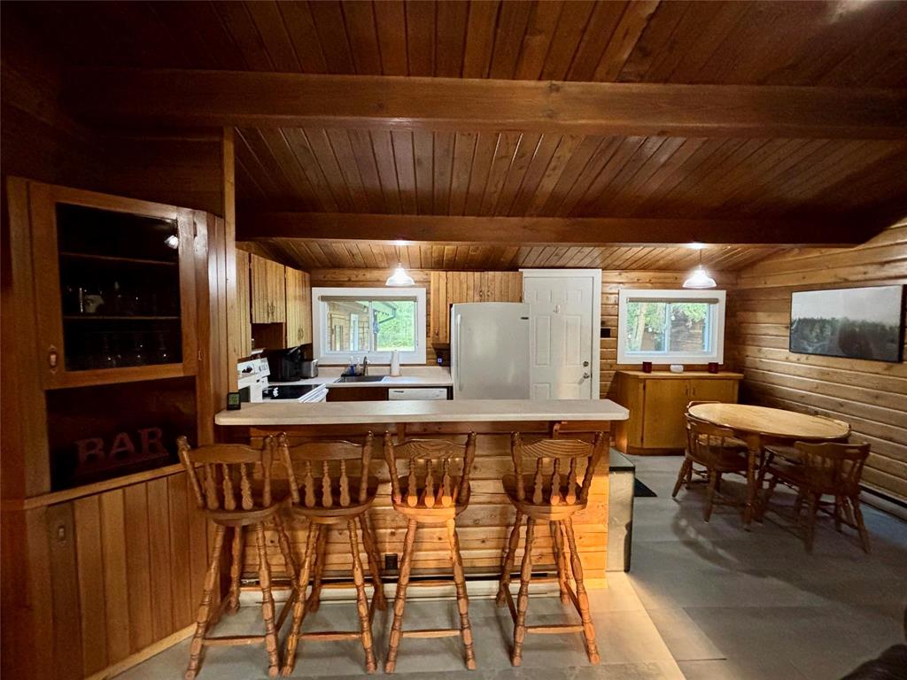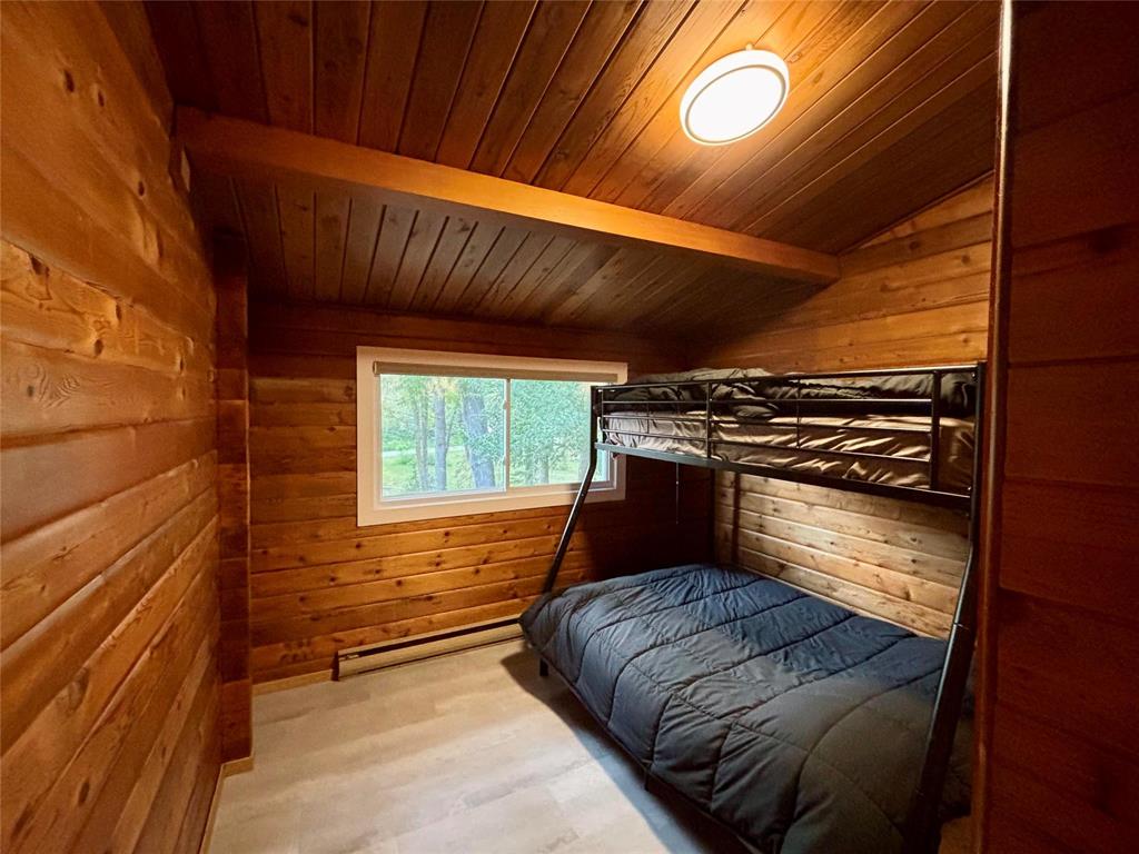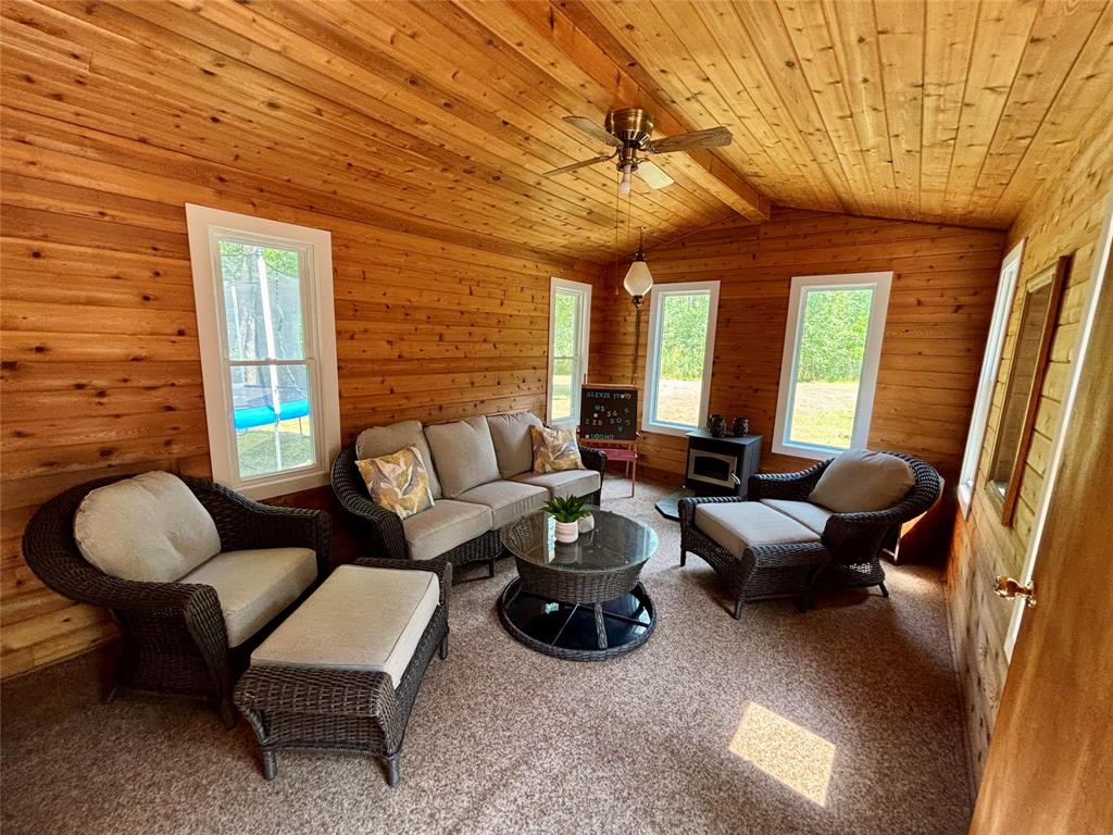 Gorgeous YR 3 BR, 952 SF + 240 SF sunroom. Solidly built Cedar Log home or cottage, on a concrete foundation in desirable Lakeshore Heights! Vaulted ceilings in the open concept kitchen/dining/living area, offer a warm country charm feeling. Perfect blend with a woodstove to cozy up to on those cooler days. There's also baseboard heat and a mini split a/c for all of life's comforts! Additional seating at the kitchen counter breakfast bar. Beautiful dbl pane windows throughout with newer custom window coverings. Details include a 200 amp panel, shared drilled well, washer/dryer, and recently added spray foam insulation in crawl space. Step out onto the back deck and into a 240 SF bright open sunroom or possible bunkie, finished in pine, additional closet space, and a pellet stove for added warmth. Situated on a private park like setting, with a mostly fenced back yard and room for the whole crew. Long granite driveway leads to a double oversized insulated detached garage w/ a workshop, and plenty of room for all the toys. Close to many parks, beaches, trails, stores, Grand Beach Provincial Park, and only a 50 minute commute to city limits! Lake life living at it's finest! Call today!