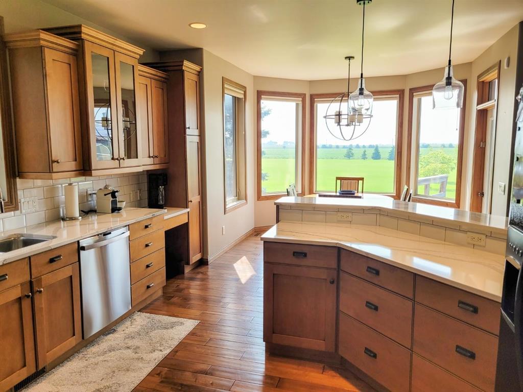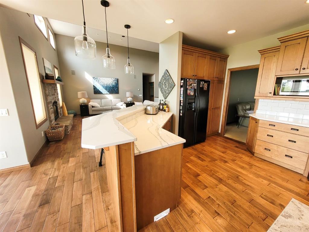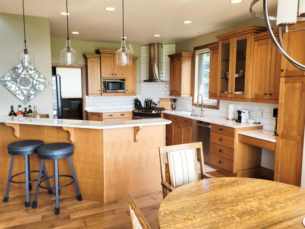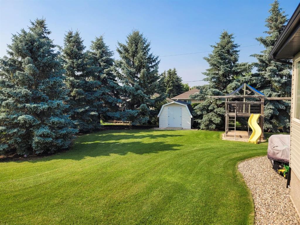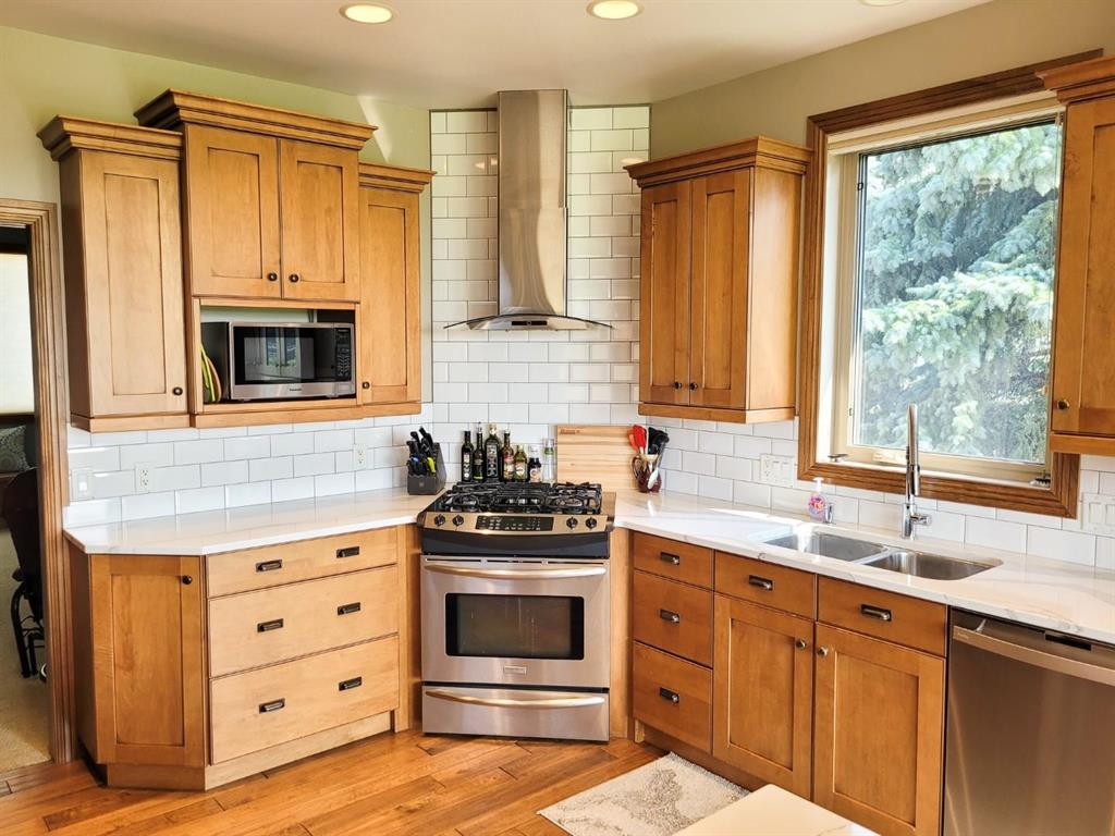This custom-built 2,147 SF home is ideally situated on a spacious double lot, backing onto a quiet public green space providing picturesque sunset views. Step inside to a grand great room featuring high ceilings, a cozy gas fireplace and west-facing windows offering plenty of natural light. Recent updates to the kitchen boast Corian countertops and a tiled backsplash and flows seamlessly into the adjacent dining area – perfect for family meals and entertaining guests. The main floor offers 3 bedrooms, including a primary suite with a walk-in closet and ensuite. You’ll also find a versatile family room and convenient main floor laundry room. Downstairs, the fully finished basement expands your living space with 2 additional bedrooms, a large rec room and dedicated hot tub room complete with separate ventilation. Outside, enjoy the oversized double attached garage, large paved driveway and beautifully landscaped yard with direct access to public green space. This home is a must-see! Contact your Realtor today to book your private showing.