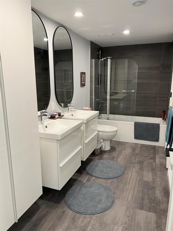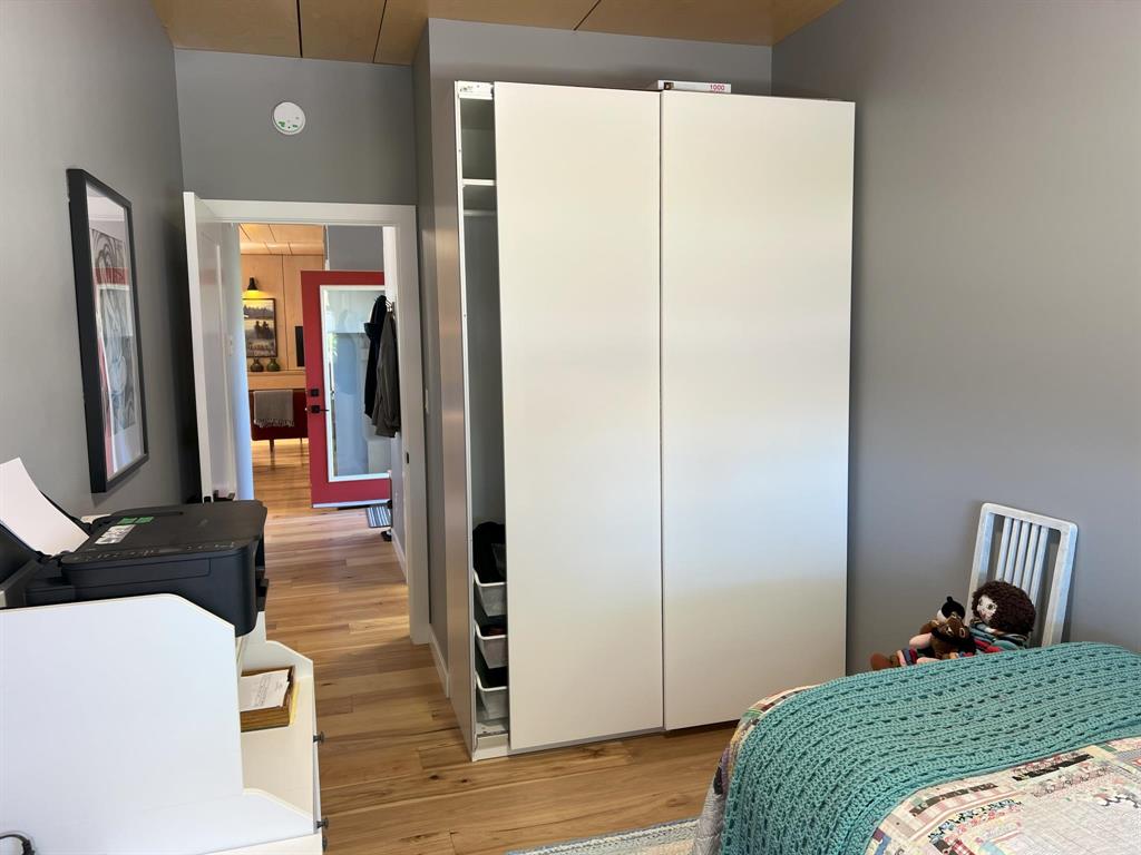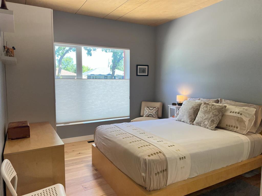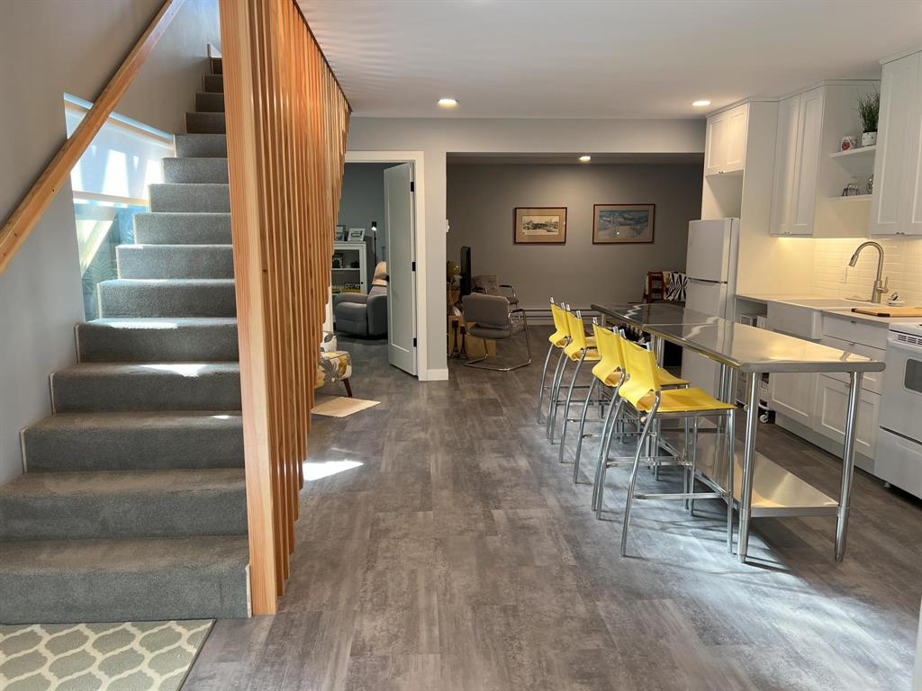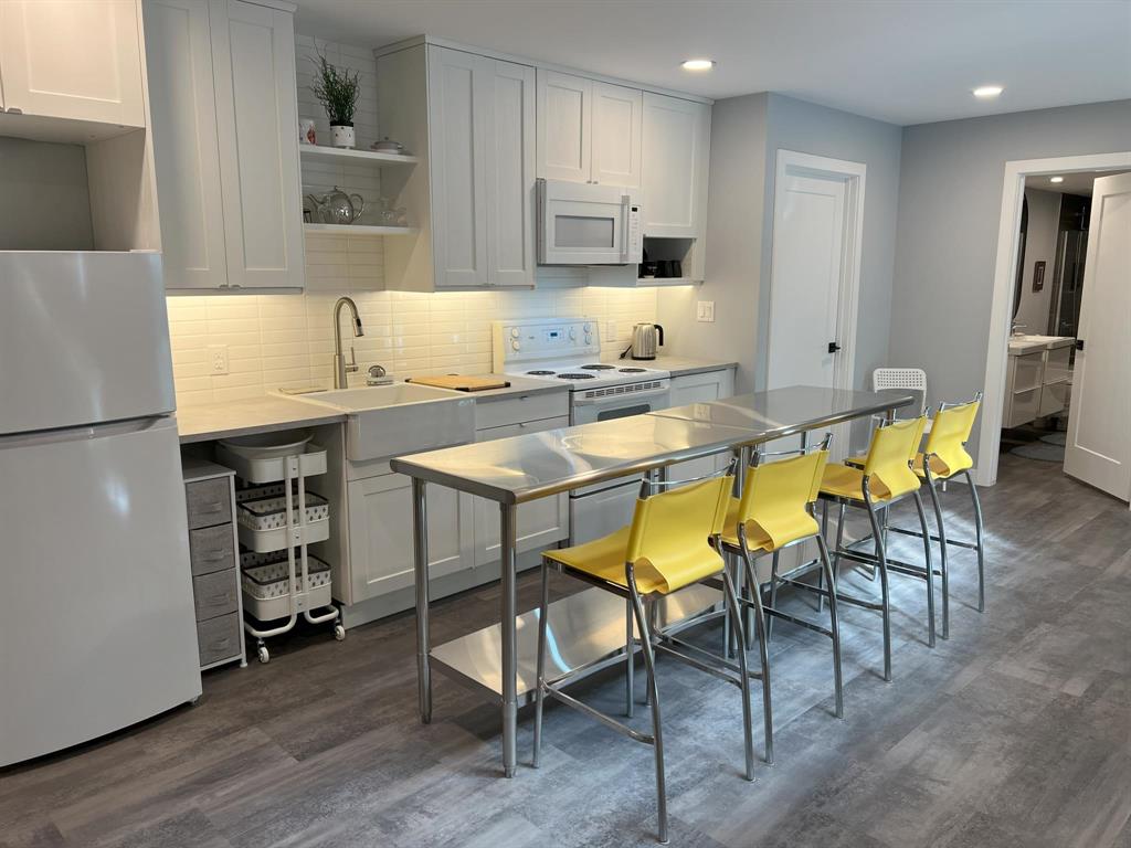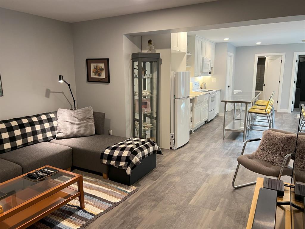 This modern, incredibly custom designed 4 bedroom, 3 full bathroom Scandinavian style home is built with great attention to detail & high quality finishes. Enjoy the spacious 1200sf main level with gorgeous open-concept living room, dining area, and kitchen with a huge island, quartz counter, and built-in media wall! Main floor features blonde hickory flooring & blonde birch ceiling. The primary bedroom has a beautiful ensuite with 2 sinks, tub & walk-in shower. The fully finished lower level has 2nd full kitchen, family area, 2 more bedrooms, and a full bathroom with 2 sinks. Unique basement walkout leads to private patio, low-maintenance urban oasis, complete with decking & landscaping. Both the home & garage are surrounded with an attractive Hardie board & steel roof exterior. 22x20 detached garage with 18ft overhead door. Located near to shopping, parks and walking paths!