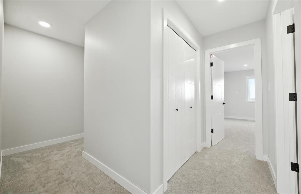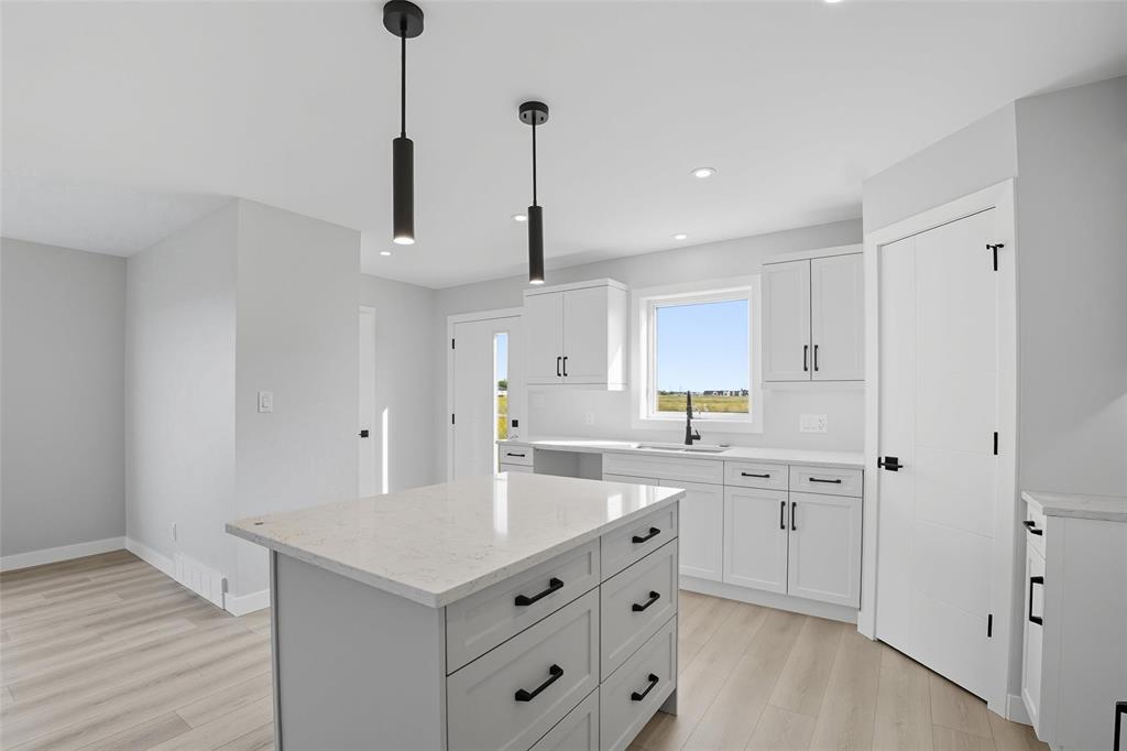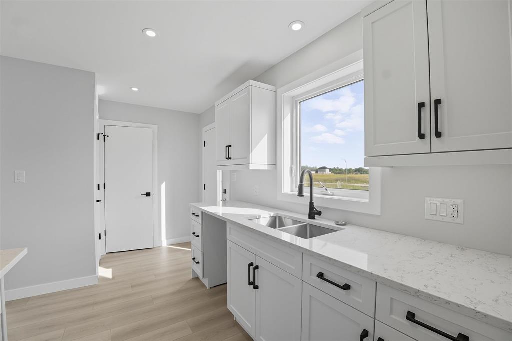 Fully complete and has grass in Front and Back yard! Ready for possession! Another fantastic build by Gerald Stoesz Contracting! This beautiful brand new 1,588 SqFt 2 Story has a Great floorplan with a front porch and railing! Featuring 3 bedrooms, 2.5 bathrooms! Enter into the large foyer area! The Living room has abundance of natural light with high ceilings and vinyl flooring leading you into the kitchen. Custom cabinets, with walkin pantry, island with quartz countertops, soft close drawers and under lighting. 2 piece bathroom off the kitchen. Upstairs The primary bedroom is huge has an ensuite bathroom with double vanity sinks and large walk in closet! Features 2 more bedrooms and 2nd floor laundry! The basement has an ICF (Insulated Concrete Form) foundation and will be fully drywalled. High quality Floor Truss System. Attached is a 24'x24' garage located on a large 59' lot! Big backyard! Concrete driveway! Located Near the new Highschool and Recreation Center! National Home Warranty Included. Appliances and landscaping available! Call now for more information.