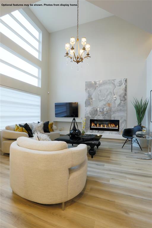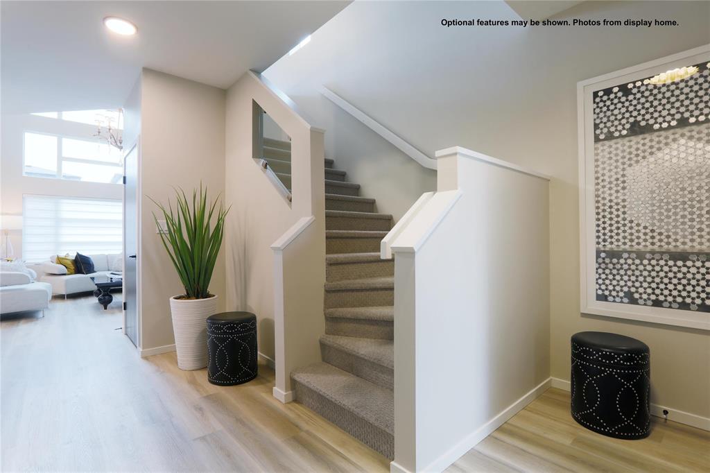 Welcome to the Hazel B to be built in Praire Pointe. At 1859 sq ft, this home has 9' ceilings on main floor, a main floor bedroom & full bathroom, plus the ceiling above the Great Room extends to the second floor providing an abundance of natural light to spread throughout the home. The Kitchen has Quartz, a walk-in pantry, which can easily be upgraded to a spice kitchen, 2 walls of upper & lower cabinets plus a 6.5' island. The spacious dining room has a garden dr to the rear yard. The laundry room is conveniently located on the 2nd floor close to the bedrooms. Note: there is No Escalation clause when building this home. All attached photos are from display home with same interior layout. Please call to book an appointment for a customized Quote, and details on other lots to build this plan on. Note: photos from display home with same interior layout.