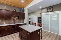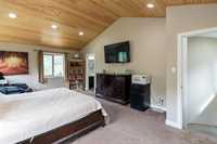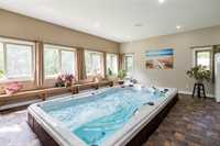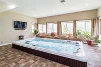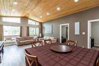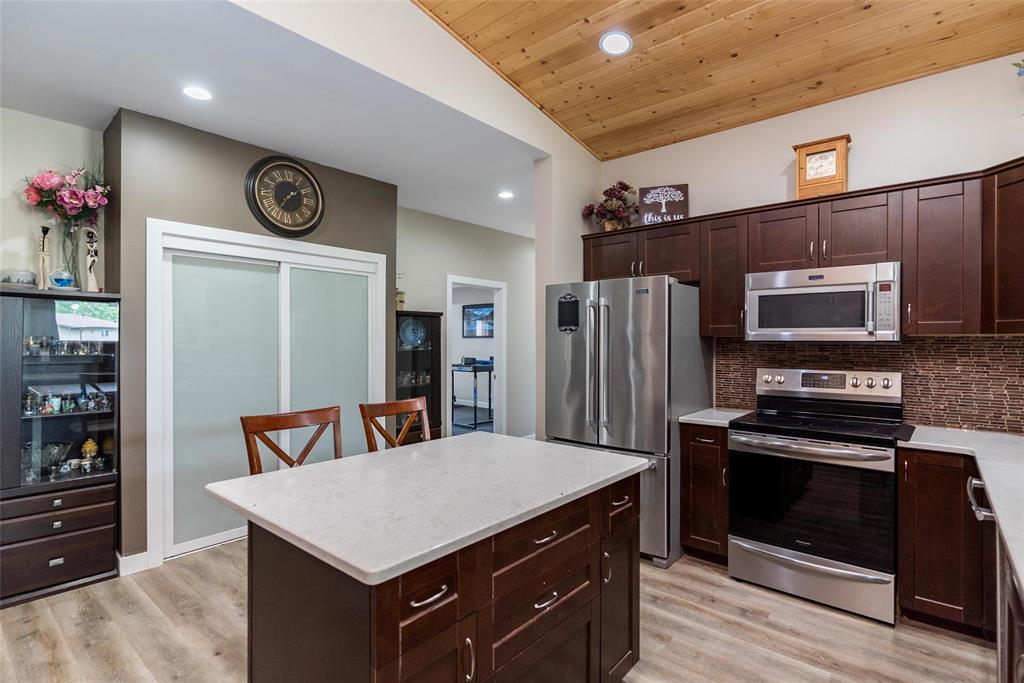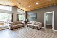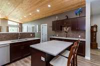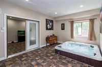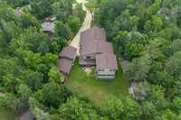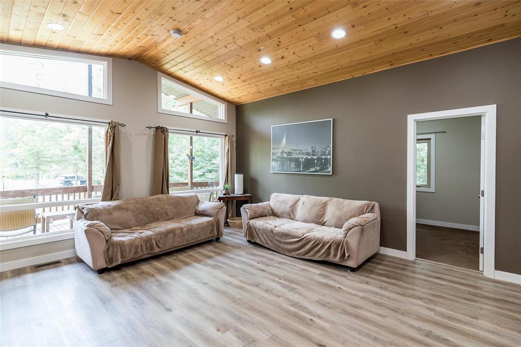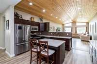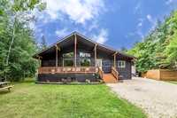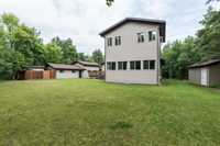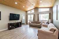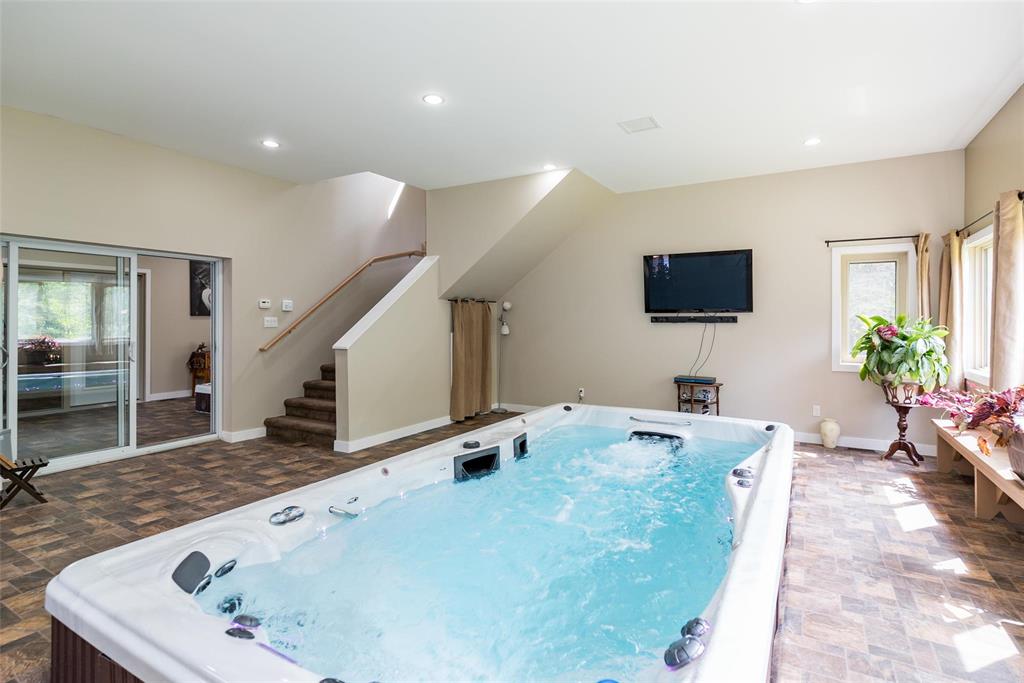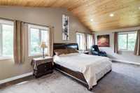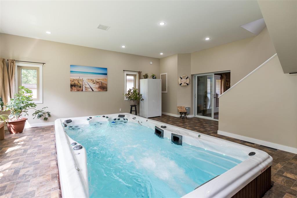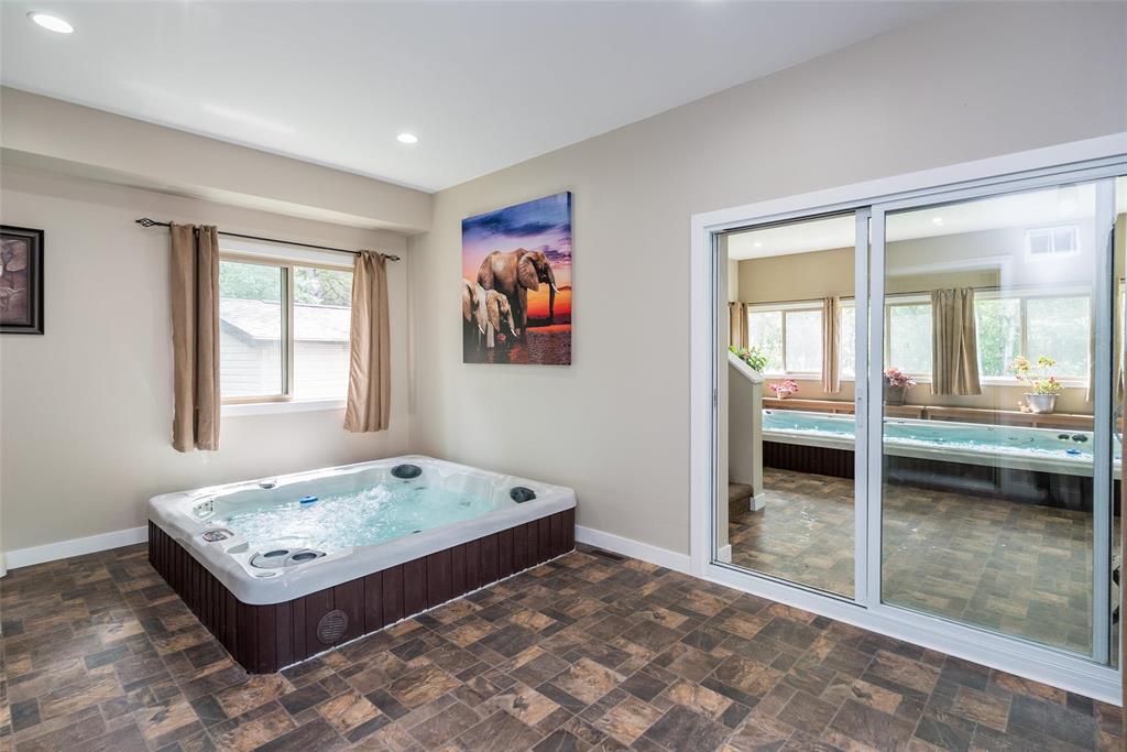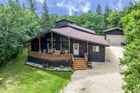 Discover your private retreat in this exceptional home, where luxury meets comfort surrounded by windows bringing in all the natural light and the beautiful views. Soaring 11' vaulted ceilings elevate the open concept living, dining, and island kitchen featuring a pantry, stainless steel appliances, and a sleek glass tile backsplash. Indulge in your own wellness and entertainment space with a home gym, indoor hot tub room, 8x15 swim spa room, and theatre room. Creating space for everyone there are four main floor bedrooms, 2 bathrooms with one offering a walk in closet. The upper level boasts a private executive suite with vaulted ceilings, large ensuite, and walk-in closet. Designed for year-round comfort with 3 HRV systems, 2 furnaces, 2 central air units, and 400-amp service. The oversized heated garage (20x42, 8–12' ceilings) with a 10 ft door is perfect for vehicles, toys, or hobbies. Both the garage and the home's striking front exterior feature 12' wavy butt cedar. Fenced-in dog kennel with heated dog shed, plus two additional sheds. Relax on the front porch or spacious back deck and enjoy the tranquility of your large, private, treed yard. Your dream home awaits.