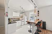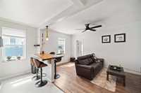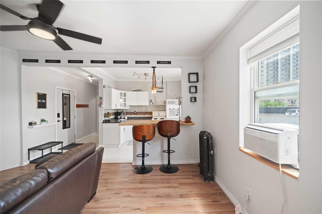Welcome to this beautifully furnished 2 bed condo unit in a prime downtown location. As you enter you will notice the great open layout and cozy feel. The living/dining/kitchen area has plenty of space to relax, with a modern kitchen and breakfast bar with seating for 4. The bedrooms are on either end of the unit, providing privacy - perfect for roommates or kids with earlier bedtimes. This top floor corner unit has south-facing windows in the kitchen, living/dining area, and both bedrooms, flooding the space with light. Walking distance to The Forks, Broadway, True North Centre, and Bonnycastle Dog Park (yes the building is pet friendly with no size restrictions), you can't beat the location!