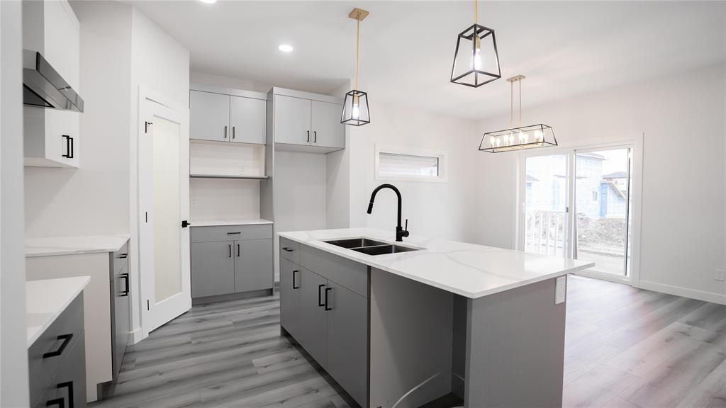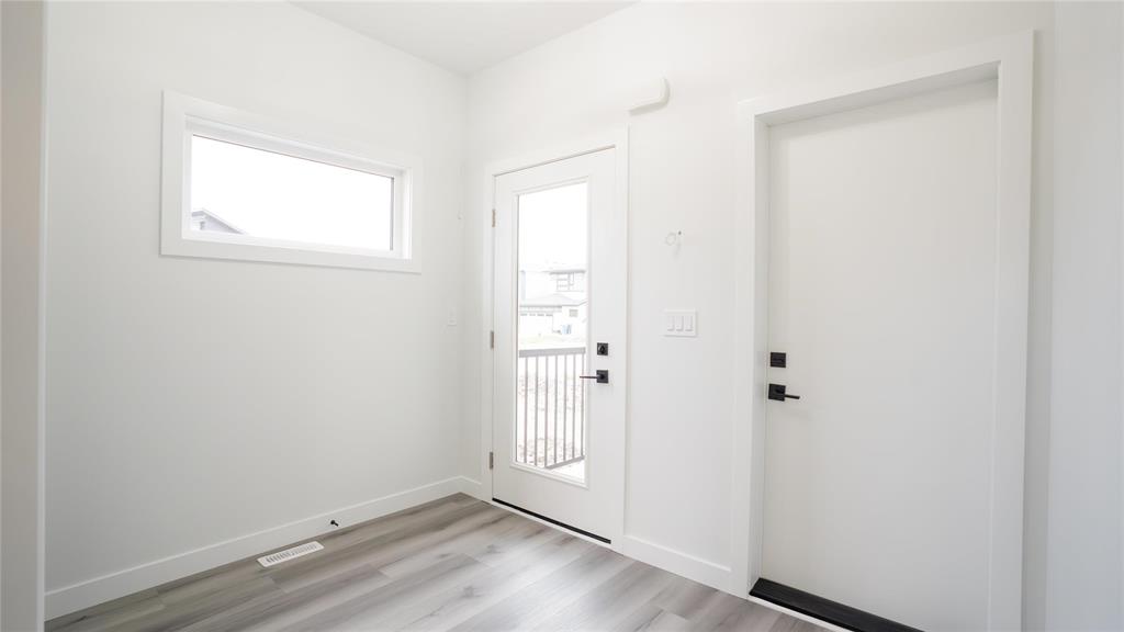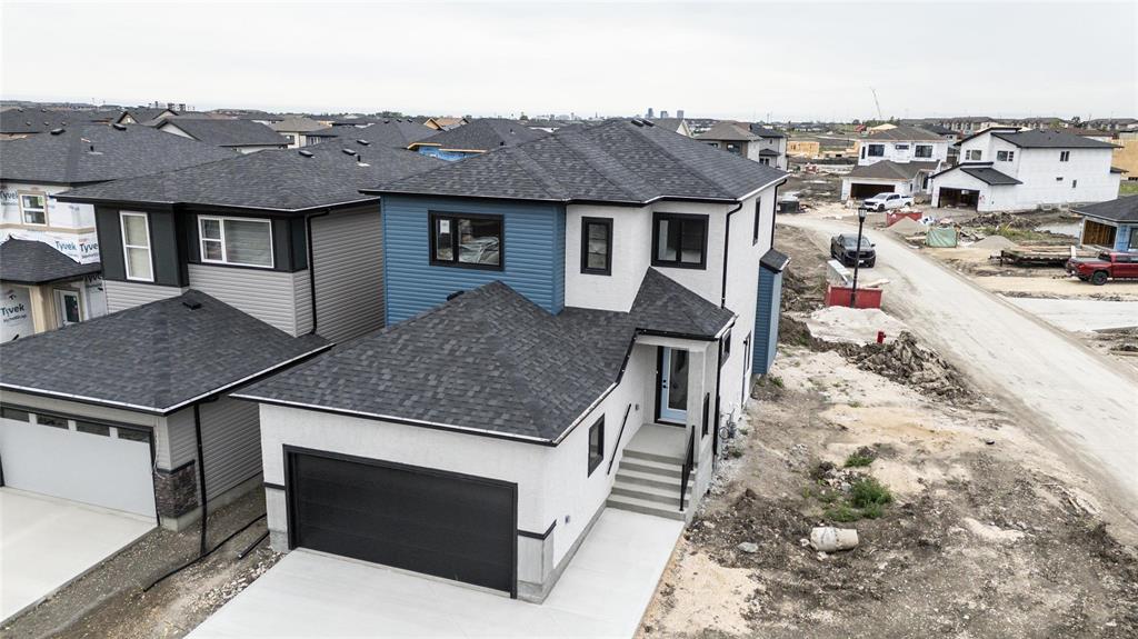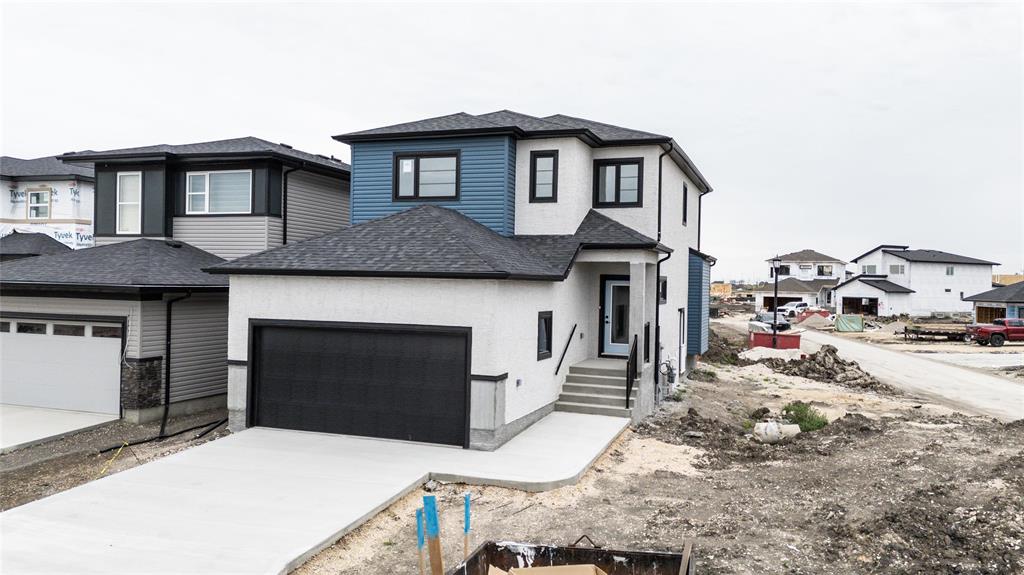 Open House 2-4 pm Saturday October 11 and Sunday October 12, 2025. This stunning plan is designed for style, comfort, and long-lasting quality. The exterior features triple-pane clear windows with sleek black front elevation accents, a black garage door, and a Delta-wrapped foundation for superior protection. Inside, you’re welcomed by a 9’ main floor ceiling, durable vinyl plank flooring throughout the main floor, and vinyl tile in all bathrooms and the laundry room. The heart of the home is the upgraded two-tone kitchen with 40" uppers, Level 3 quartz countertops, and a black and gold lighting package for that luxury touch. Thoughtful finishes include black fixtures and accessories, a cantilevered standard fireplace, and a main floor full bathroom with a shower door. Built for strength and stability, this home includes engineered joists, a steel beam on the main floor, and a side entrance for future basement potential.