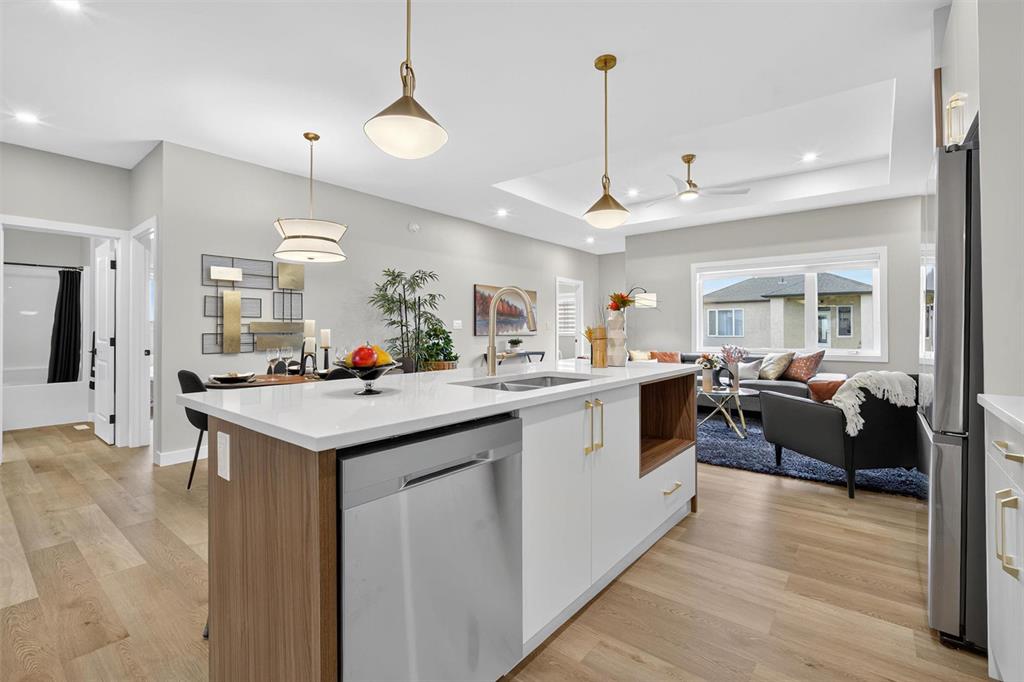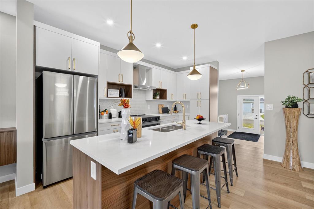 Welcome to your new dream home in the charming town of St Adolphe, MB! This beautifully designed open concept house boasts 1436 sq ft of living space with 3 bedrooms and 2 bathrooms. The 9' ceilings give an airy and spacious feel, while the quartz countertops with tiled backsplash in the kitchen provide a modern touch. The family room will include a nice feature wall with a built in electric fireplace. Enjoy easy maintenance with vinyl plank flooring throughout the house and carpet in the bedrooms for comfort. From the garage you step in to your spacious mudroom/laundry room connecting to the front foyer. Kitchen Appliances to be included and Front yard landscaped.