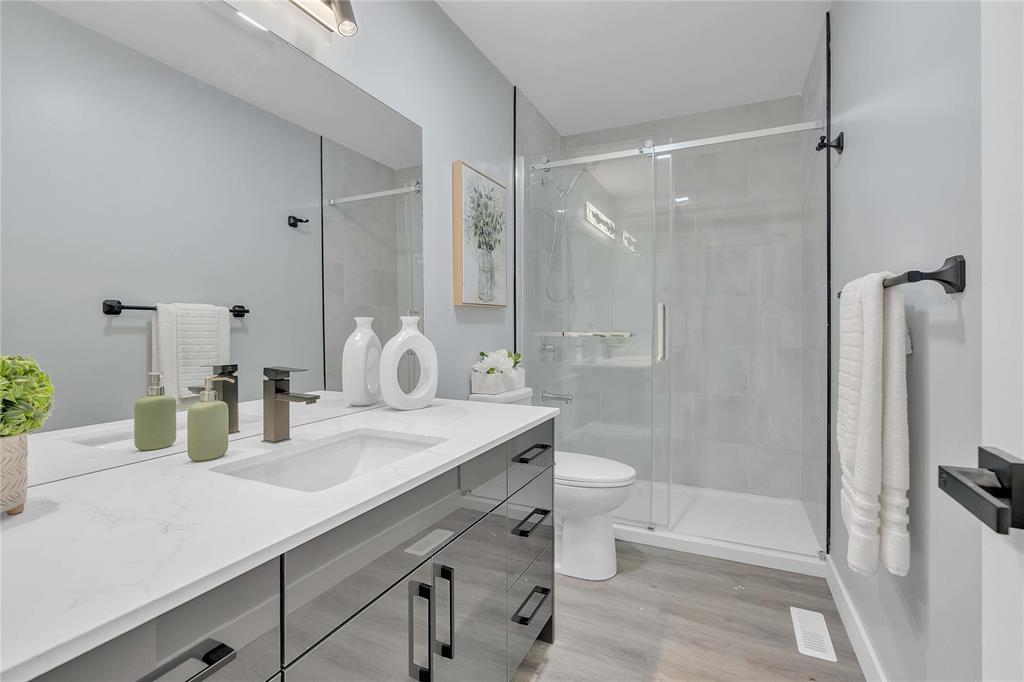 S/S Now, OH Sat/Sun 2-4 PM 11th & 12th Oct 2025.Offers reviewed on Oct 14th at 6 PM . Discover this beautifully renovated bungalow in Winnipeg’s Meadows West. Move-in ready with three bedrooms, two and a half baths, and basement suite potential. Main floor boasts an L-shaped living room/dining and brand new eat-in kitchen with loads of cabinets, quartz countertops and stainless steel fridge, stove and dishwasher. Window overlooks backyard with great sightlines for watching as kids play while you meal prep. Level is complete with primary bedroom with 2 piece ensuite, 2 additional bedrooms and 4 piece bath. Lower level is finished with rec room, 3 piece bath, laundry area with side door access, making it ideal for further development potential or family enjoyment. Front drive access to oversized freshly painted double detached dry-walled garage with front drive access. Backyard is fenced and ready to enjoy those long Winnipeg summer days. Upgrades include brand-new vinyl flooring, energy-efficient windows and doors, freshly painted inside and out, with a 200-amp electrical panel and professionally landscaped yard for great curb appeal. Steps from Meadows West School, parks, shopping, transit, and more.