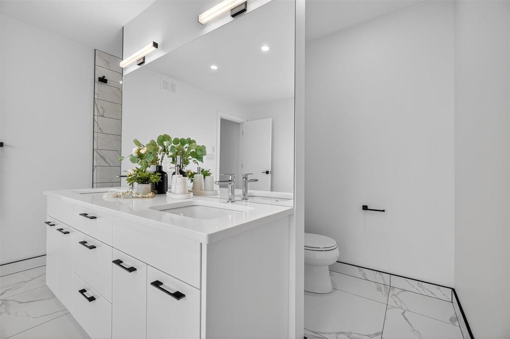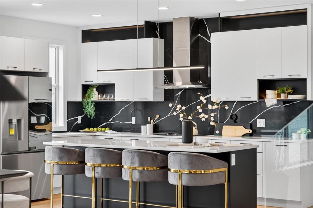 Absolutely stunning! This brand-new 2,800 sqft two-storey walkout sits right on the lake and is loaded with upgrades—plus it’s been thoughtfully designed with Vastu in mind. Featuring 5 bedrooms and 3 full baths, including a main-floor bed/bath combo and suspended wood floors (wood structural), this home blends luxury with function. The bright, open-concept living space showcases soaring ceilings, massive windows, and a show-stopping entertainment wall with an electric fireplace, built-ins, and a 10/10 chandelier. The chef’s kitchen is pure perfection with a 9' island, high-end appliances, quartz backsplash, and custom cabinetry—plus a fully equipped second kitchen with range and built-in oven/microwave. Sleek custom glass railings with wood and metal accents lead to the upper level, where you’ll find a dreamy primary suite with a spa-inspired 5-piece ensuite, walk-in shower, soaker tub, and huge walk-in closet. Three more spacious bedrooms, a 4-piece bath, and upper-level laundry complete the space. The walkout basement boasts 9’ ceilings, while upgrades include 200amp service, custom lighting, extra pot lights, a flat garage roof, and more. This home is move-in ready—and ready to impress!