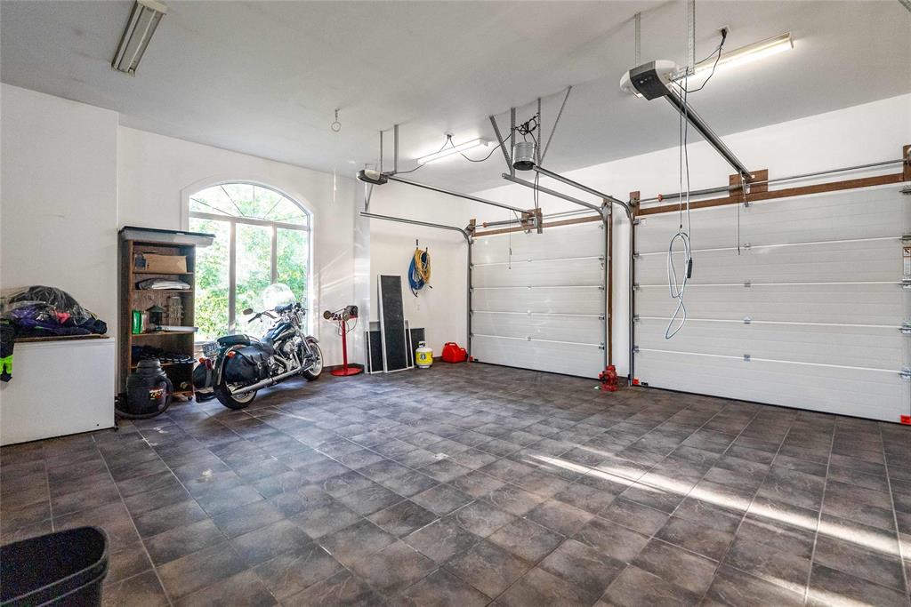 Oversized insulated garage w/ tiled floor w/ workshop area. The acrylic stucco exterior & interlocking stone parking pad & tiled front steps elevate the home’s curb appeal.