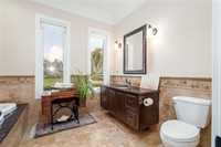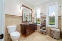 Natural stone flooring graces the dining room, hallway, & DEN, adding timeless character. Bedrooms feature walk-in closets, while the primary suite offers a private retreat w/ a spa-inspired ensuite finished in granite w/ an extraordinary tiled shower. The 2nd bath boasts a jetted tub w/ a relaxing view. An additional 3-piece bath & a well-appointed laundry room are also set in place.