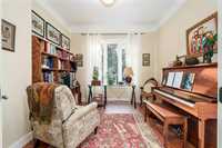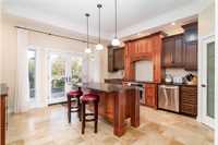 Soaring 10’ ceiling home w/ gleaming hardwood floors & a wood-burning fireplace (FP mantle new in 2024). The gourmet cherry & maple kitchen is a chef’s dream, complete w/ granite countertops, ceramic tile backsplash, SS appliances, & a large island. A 2nd kitchen opens through garden doors to a stunning stone patio—ideal for summer entertaining.