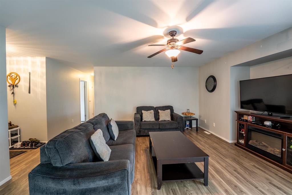 Step inside to a bright, spacious living room that flows into the dining area and functional kitchen with plenty of counter space and cabinetry. The main floor features a large primary bedroom with 3-piece ensuite, two additional bedrooms, and a 4-piece main bath.
