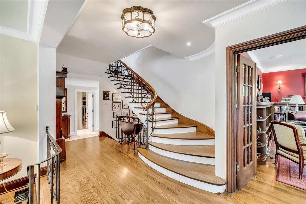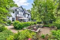 A true architectural masterpiece built by Art Gross with architect Les Stechesen. This remarkable residence is nestled on exquisitely landscaped grounds & defined by impeccable craftsmanship & an artful blend of luxury & sophistication. This home welcomes you with a stunning sunken LR, complete w/a warm, inviting fireplace. Rich hwds flow seamlessly throughout, while elegant French doors open to a formal DR that comfortably seats 12 guests & offers access to a patio...perfect for lavish entertaining. The bright, white chef’s kit is a culinary dream, featuring top-of-the-line appliances, abundant cabinetry, & a spacious dining area. A cozy & refined library with its own fireplace provides the ideal retreat for quiet evenings. Upstairs, the private UL offers a charming office, serene den, 3 pce bath & 3 generously sized brs, including a luxurious primary suite boasting a spa-inspired 5-piece ensuite bath & a custom-designed WICC...your personal sanctuary for relaxation. The LL impresses w/a stately rec room, anchored by a dramatic stone wood-burning FP. Spacious AT/2. This exceptional home is the epitome of timeless elegance & modern comfort.