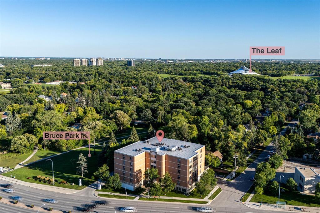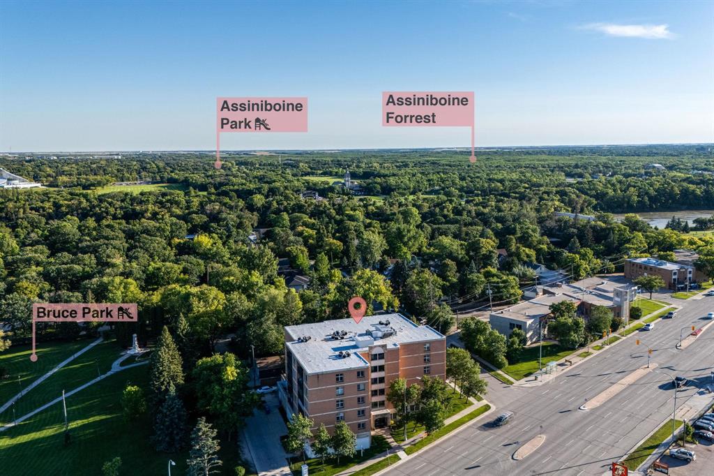 Welcome to your peaceful perch in one of the city’s most serene and sought-after senior-friendly communities. This beautifully updated top-floor unit faces directly south, offering a front-row seat to the canopy of trees and the iconic Leaf botanical gardens at Assiniboine Park. Step inside to find modern touches like granite countertops, in-suite laundry, updated flooring, and central air. Your enclosed balcony is the perfect spot for morning coffees and the perfect sunrises, no bugs, no wind, just pure calm and tranquility. The building itself is whisper quiet, immaculately maintained, and filled with friendly faces. Residents enjoy access to a fitness room, party room, and a secure parkade. Plus, you're steps from the charming Bruce Park with its walking paths and natural beauty. If you’re looking for that perfect blend of independence, peace, and low-maintenance living in a prime location then this is the one! Call your Realtor today to book a private showing.