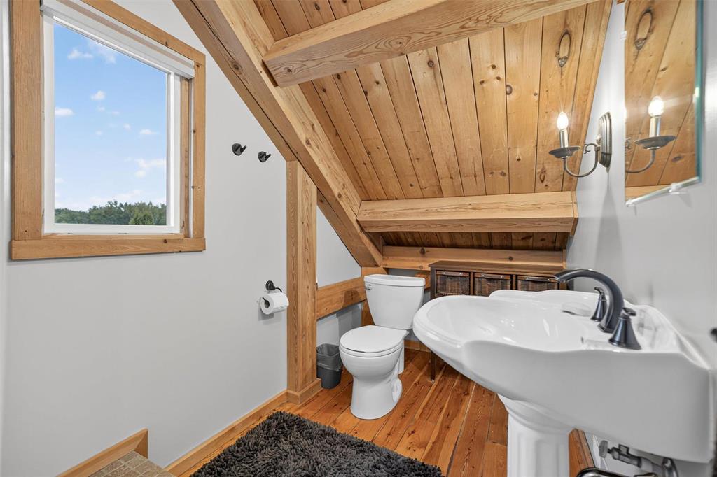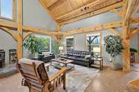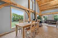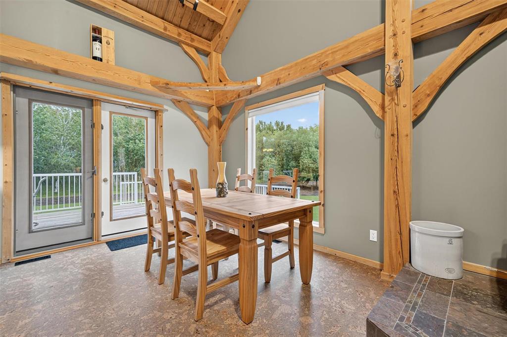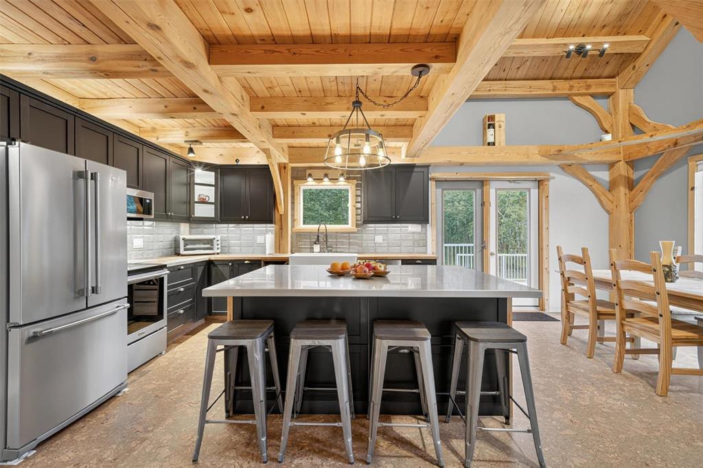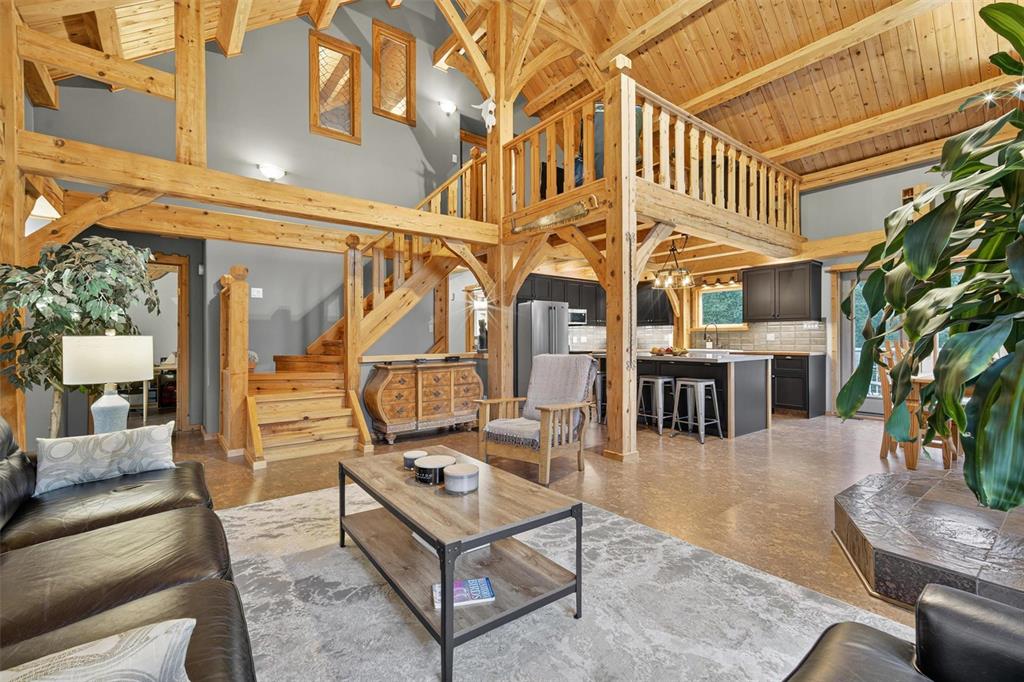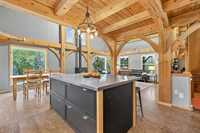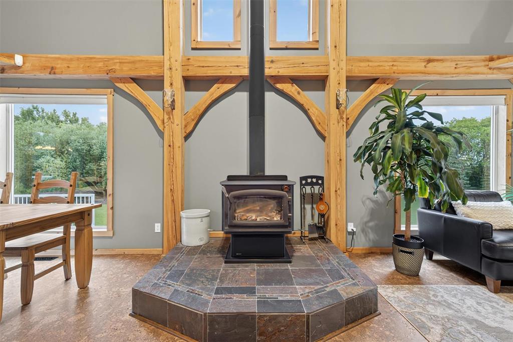 Welcome to Windy Hollow — a private 78.83-acre country oasis in sunny St. Clements. At its heart is a stunning custom timber-frame home, blending rustic charm with modern comfort. Soaring vaulted ceilings, warm wood accents, and a cozy wood stove create an inviting atmosphere, while the chef’s kitchen is built to impress with space and function.