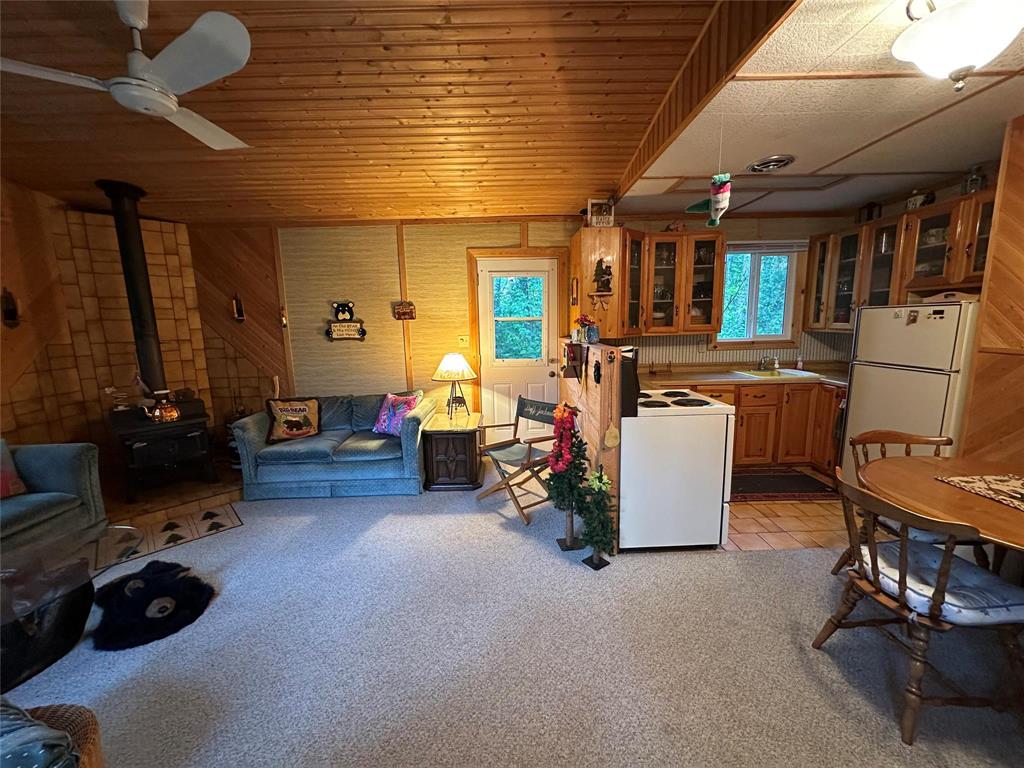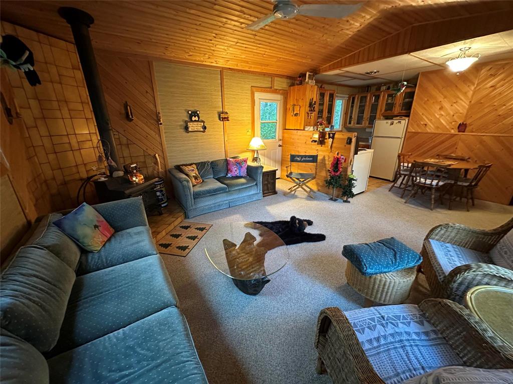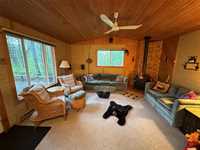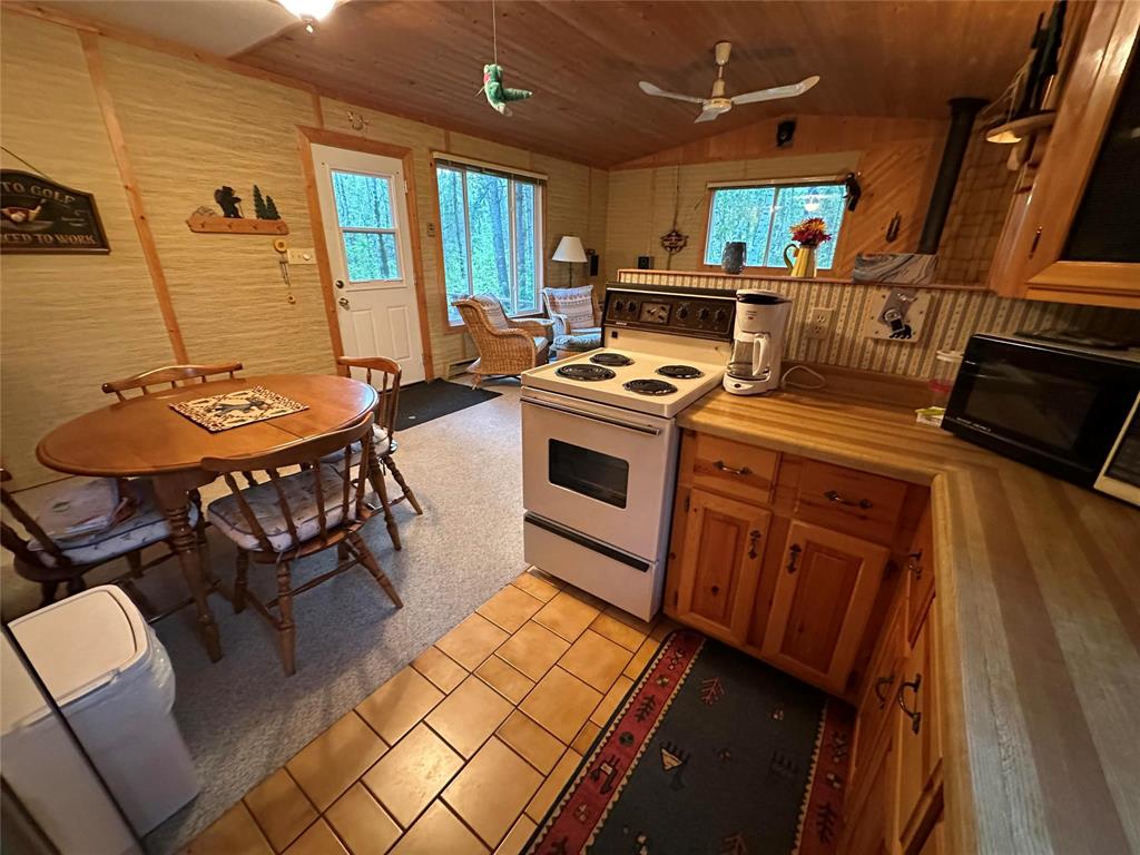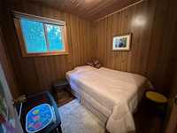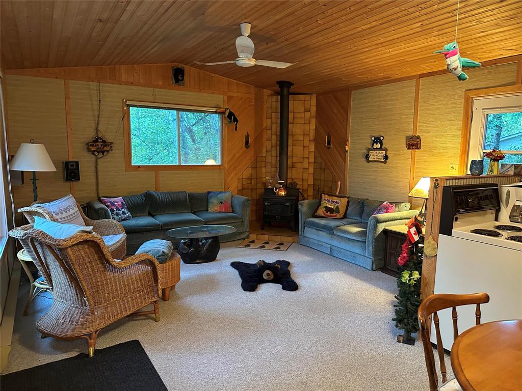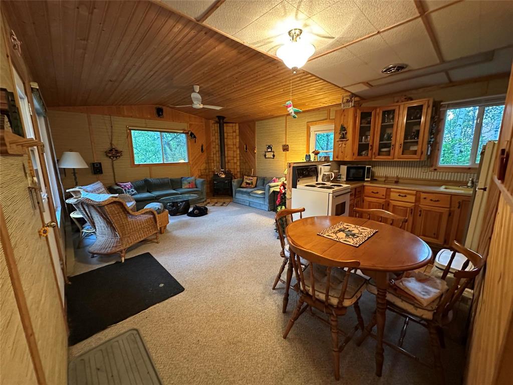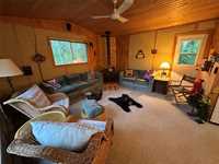 Nestled in the trees, This neat as a pin well maintained cottage is super private and tucked away. With 3 Bedrooms and a 4 Piece bath, this cottage has a great efficient design that makes maximum use of the space.Insulated, with baseboard heat and corner Woodstove, and Vaulted ceilings in the open living/Dining/ Kitchen Area, this cozy cottage is finished in Pine, with newer windows and vinyl siding, and a large front deck for taking in the sunshine, this cottage comes fully furnished with tasteful cottage furnishings and decor, including the deck furniture! it's literally move in ready for you to enjoy! all you need is your bathing suit!
