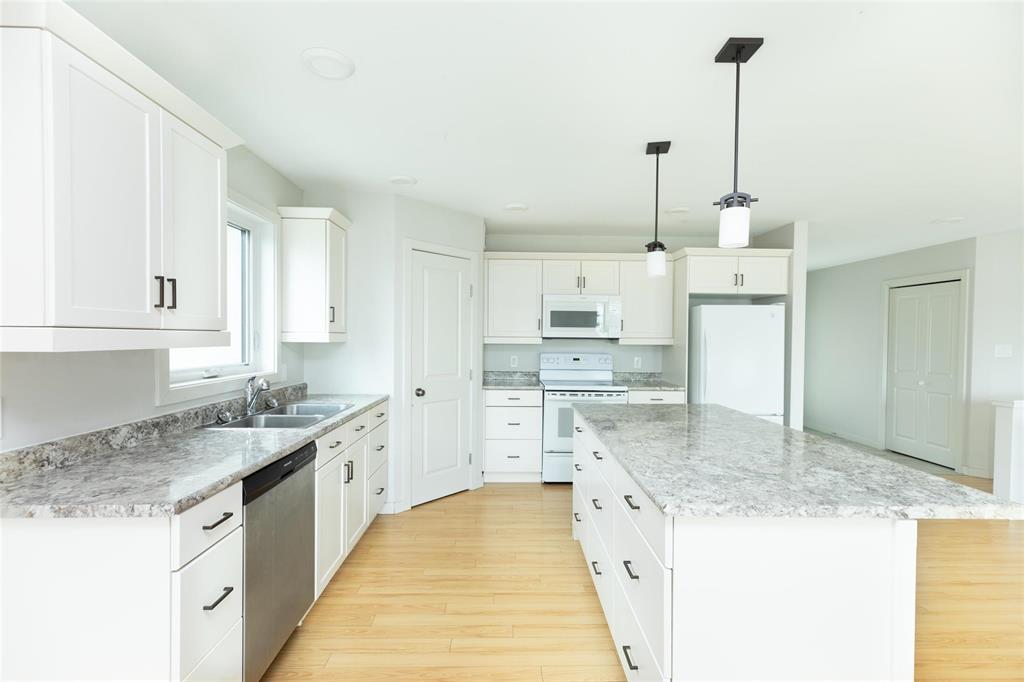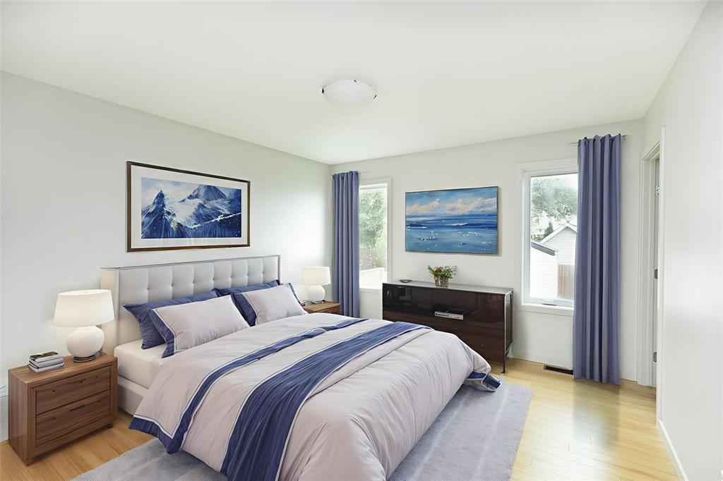 Welcome to this beautifully maintained 1,300 sq ft bungalow, offering comfort, convenience, and room to grow. With 3 spacious bedrooms and 2 full bathrooms, including a private 4-piece ensuite, this home is sure to impress! Step into a bright and airy living space with large windows that flood the home with natural sunlight throughout the day. At the heart of the home is a sleek, modern kitchen featuring clean lines, contemporary cabinetry, quality finishes, and ample counter space—perfect for cooking, hosting, or family meals. Enjoy the added convenience of main floor laundry and direct access to a sunny backyard deck — perfect for relaxing or hosting friends. The full basement has durable vinyl flooring, and is ready for your personal touch—whether you envision a home gym, media room, or additional bedrooms it is ready for further development. Situated in a quiet, family-friendly neighborhood, this home offers both peace and accessibility to nearby amenities. Whether you're looking to settle in or invest in a home with future potential, this bungalow is a must-see. Don’t miss out on this sunlit, move-in ready gem!