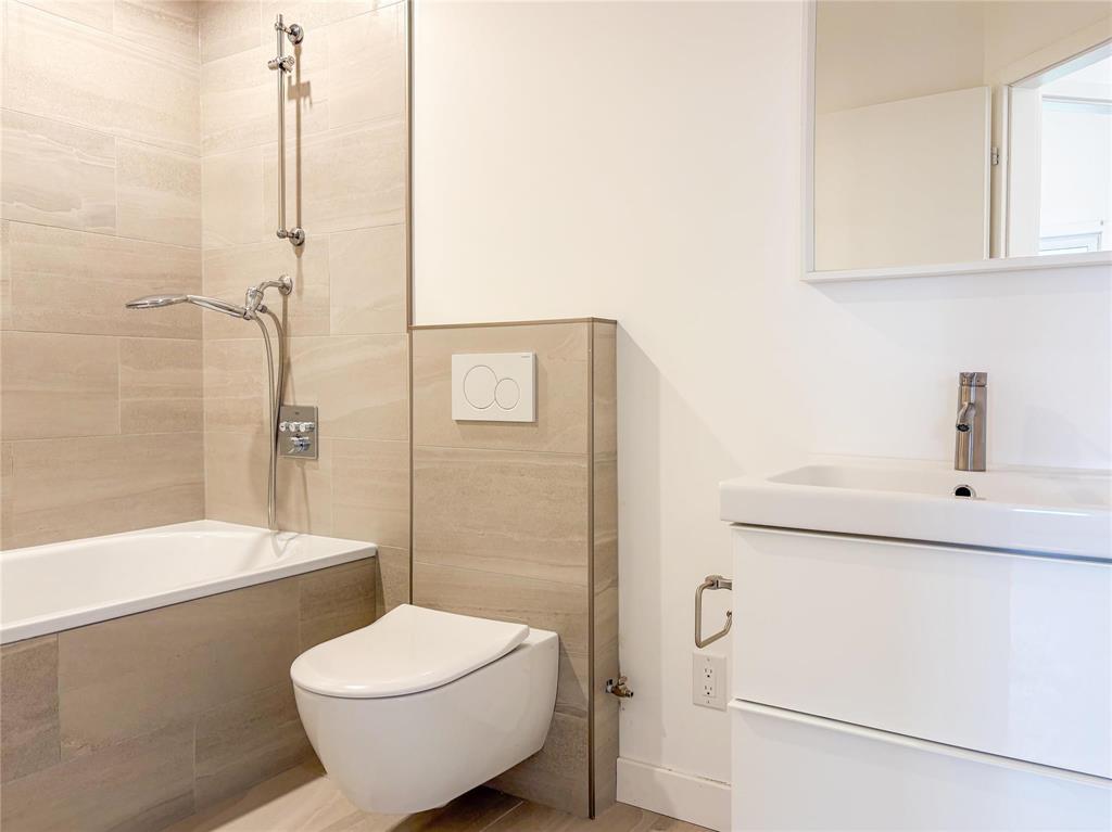 Step into refined modern living with this impeccably designed 3-bedroom, 2.5-bath home, where style meets function in every detail. Boasting 9-foot ceilings throughout and flooded with natural light from expansive European windows and doors. The clean, contemporary kitchen is a true showstopper—featuring crisp white cabinetry, stunning quartz countertops, a stylish tile backsplash, & an oversized 8-foot island. A dedicated cooktop area with a convenient pot filler adds a luxurious touch for the home chef.